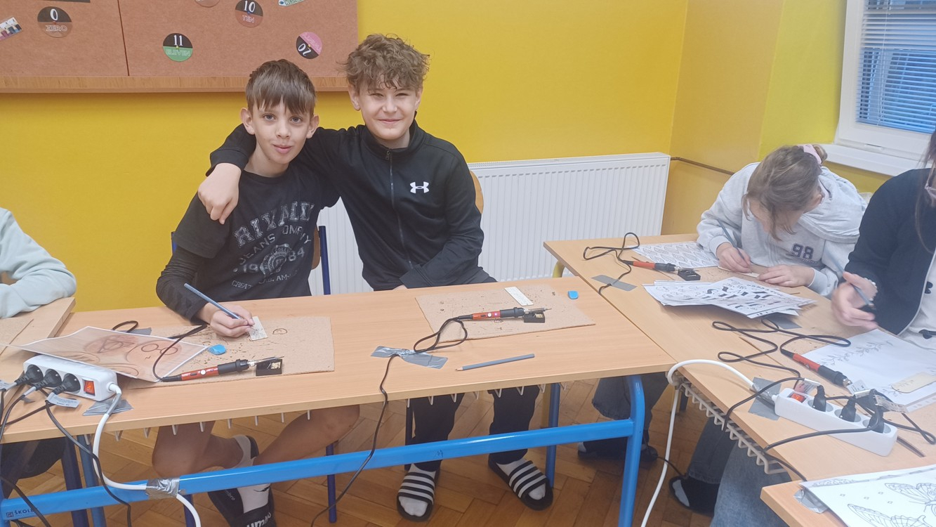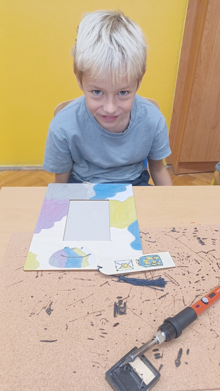 V pátek jsme se opět zúčastnili dílen s Dramacentrem, tentokrát jsme si vyzkoušeli práci s vypalovačkou - tvořili jsme záložky do knížek, rámečky na fotky i stojánky na tužky. Všichni byli moc šikovní, práci si užili a domů si odnesli krásné výrobky.