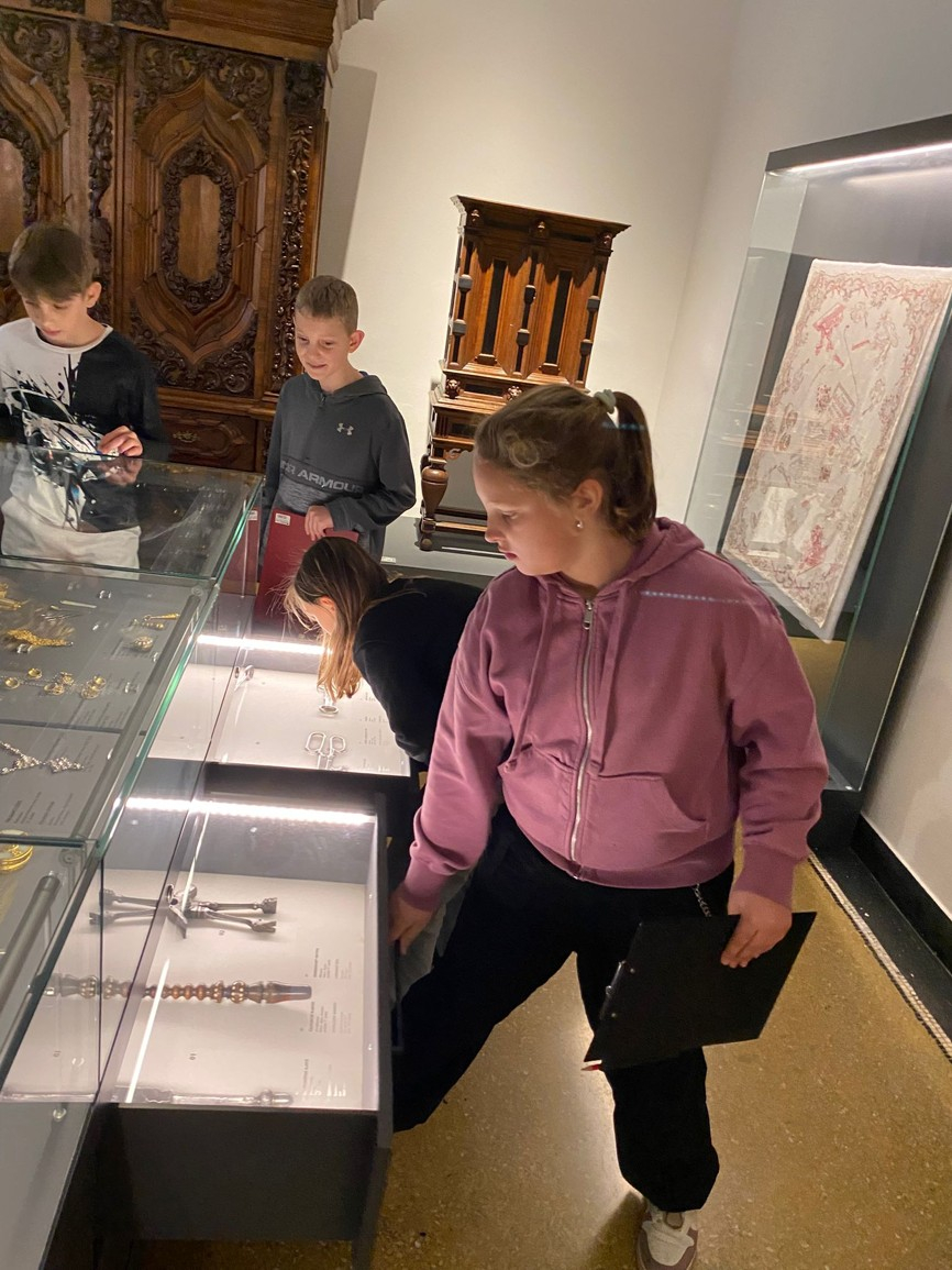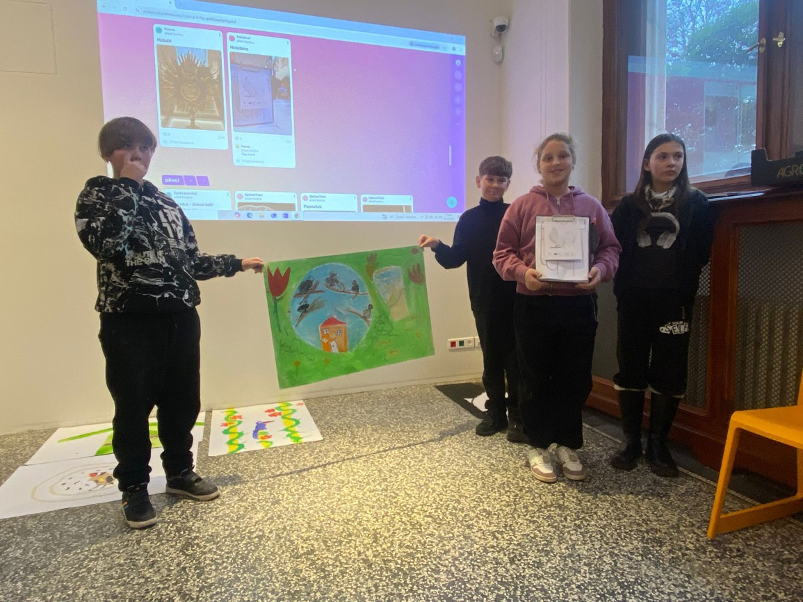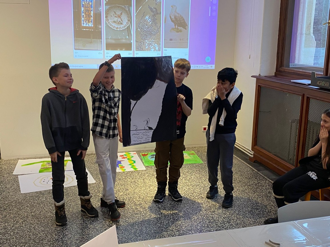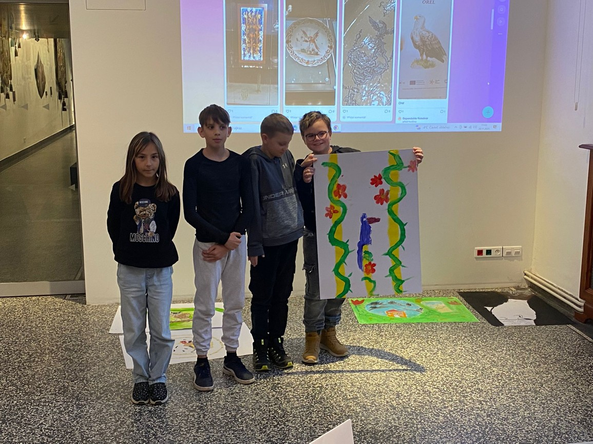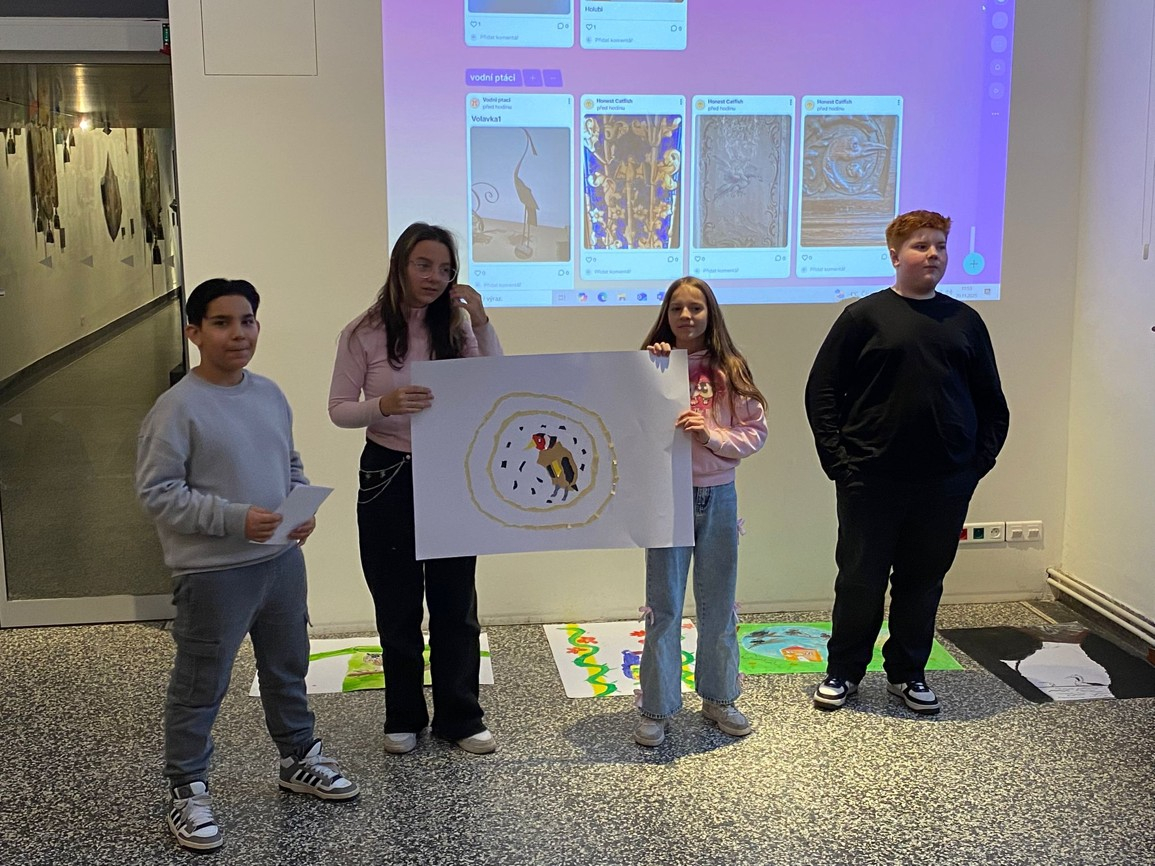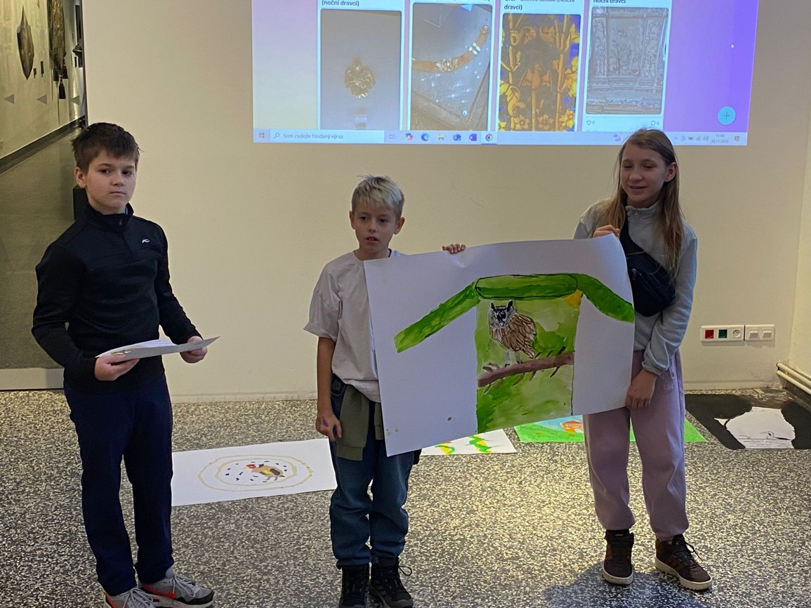 Ve čtvrtek 20.11. jsme navštívili Severočeské muzeum, kde jsme se zúčastnili programu Ptačí příběhy. Nejprve jsme se seznámili s tím, co jsou to symboly a kde je ve světě kolem nás nalezneme a k čemu slouží. Zjistili jsme, že lidé již od dávných dob využívají ptačí symboliku a že v našem muzeu najdeme spoustu předmětů s ptačí symbolikou. Rozdělili jsme se do skupinek a pomocí různých aktivit jsme si zahráli jak na ornitology, tak na historiky a v neposlední řadě také umělce, kteří sami využili symboliky a pomocí různých výtvarných technik tvořili vlastní ptačí příběhy.