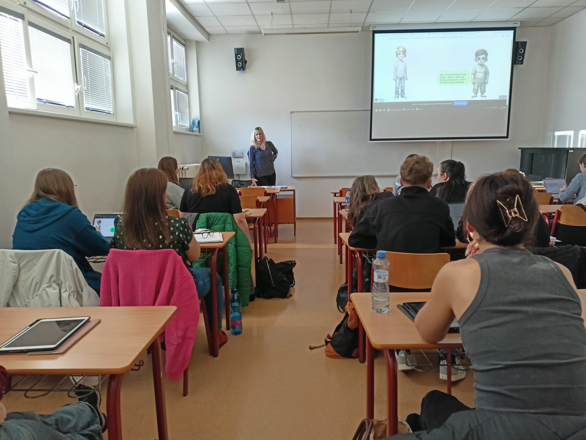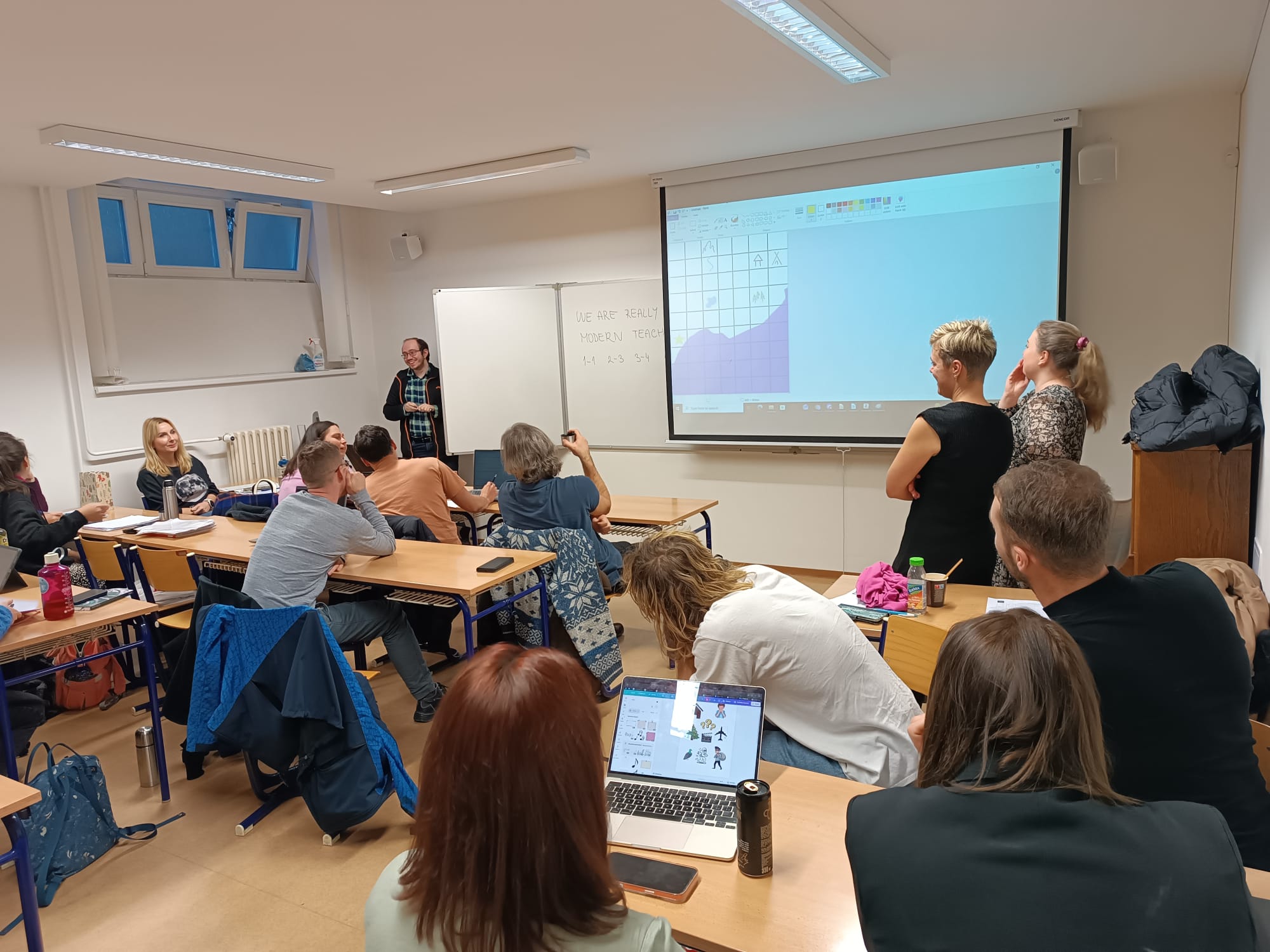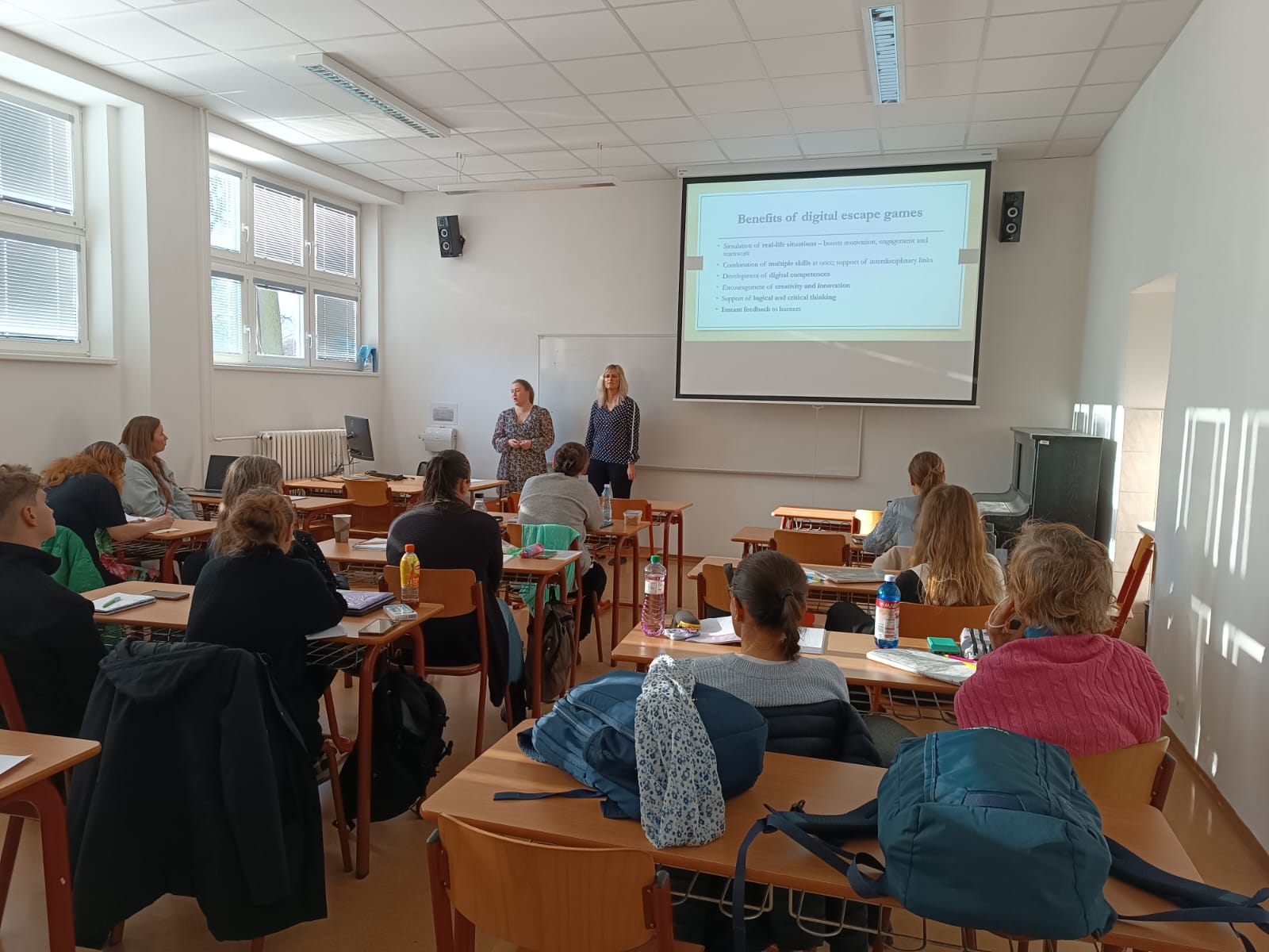 V prosinci naše škola zorganizovala workshopy na katedře anglického jazyka Pedagogické fakulty Technické univerzity v Liberci, určené studentům učitelství anglického jazyka. Workshopy byly zaměřeny na představení programu Erasmus+ a možnosti mezinárodní spolupráce, využití digitálních únikových her ve výuce a práci s nástroji pro jejich tvorbu. Součástí workshopů byly také tvůrčí aktivity, při nichž si studenti sami vytvářeli krátké úkoly s využitím STEAM prvků a následně je navzájem sdíleli a řešili.