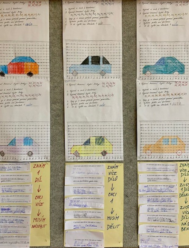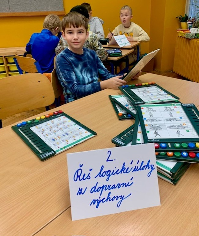 Druhá část projektu AUTOMOBIL VČERA , DNES A ZÍTRA byla rozdělená na dvě části. První část probíhala u nás ve třídě. Měli jsme připraveny šest ostrůvků s různými úkoly. Všechny propojovalo téma auta a dopravy. Každý si mohl vybrat, co ho zajímá. Někdo stihl všechny úkoly. Někdo se zaměřil na jeden, dva úkoly, kterým se pečlivě věnoval.