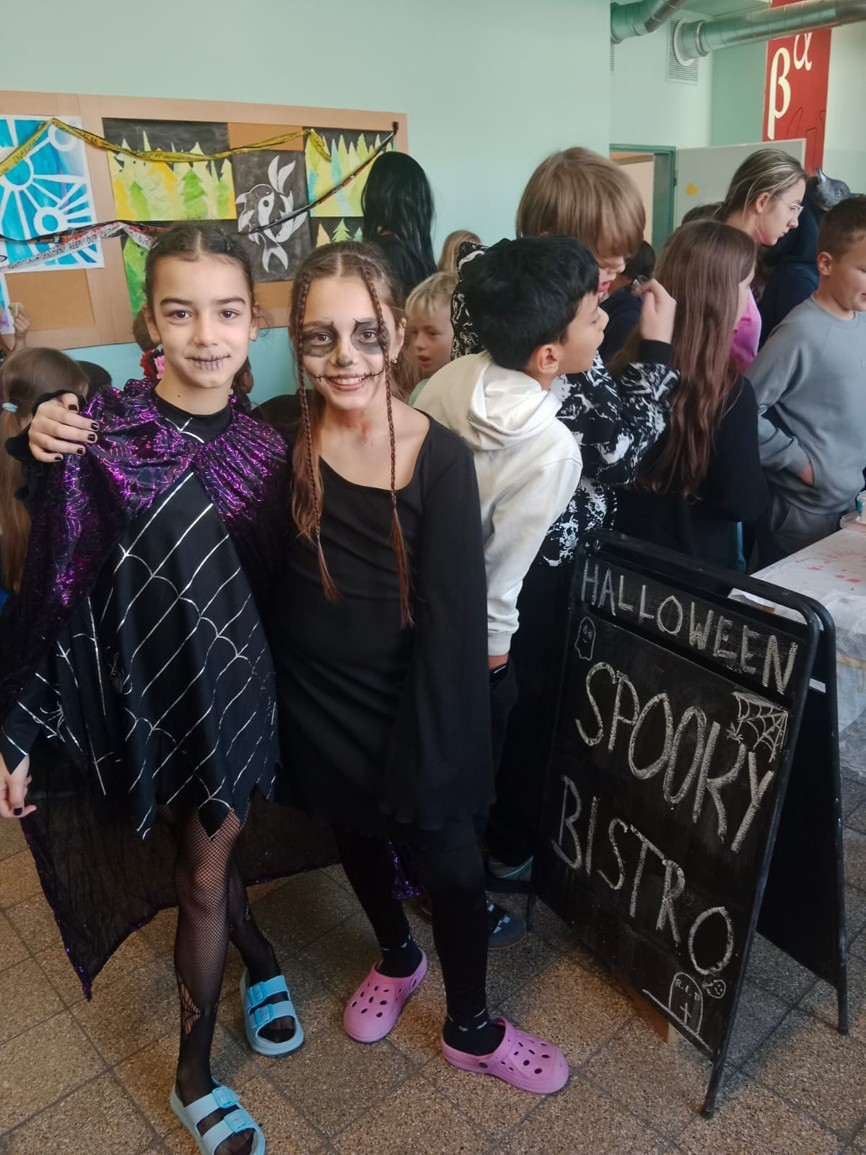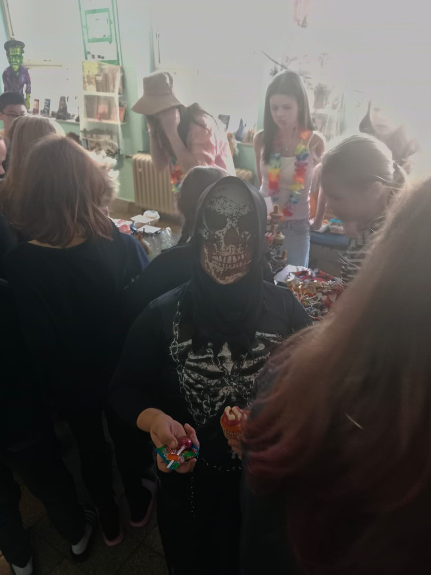 Dnes jsme si užili oslavu Halloweenu, děti přišly ve strašidelných maskách a ve druhém patře pro ně byl připraven fotokoutek, tombola a různé občerstvení.