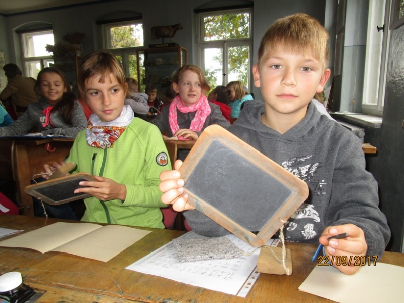 Projekt Homo et regio je přeshraniční program enviromentální výchovy. Naše třída uspěla s žádostí o zařazení do programu a tak jsme v pátek 22.9. absolvovali první setkání s naší partnerskou třídou dětí z Německa. Tentokrát jsme podnikli výlet za hranice. Seznámili jsme se s krajinou a historií městečka Wartha v Horní Lužici. Organizátoři nás vzali do muzea, představujícího výuku ve staré škole. Mohli jsme si vyzkoušet sedět v lavicích 100let starých, psát husím brkem nebo na břidlicové tabulky. Navštívili jsme ekocentrum ve Warthě.