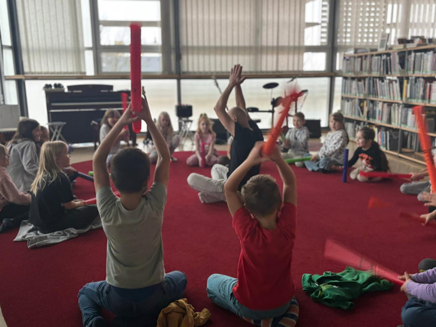 V hudebním oddělení městské knihovny jsme byli na programu Hlas a uši. Děti si s nadšením vyzkoušeli boomwhackery - zvukové trubky a rozlišovali sílu zvuku.