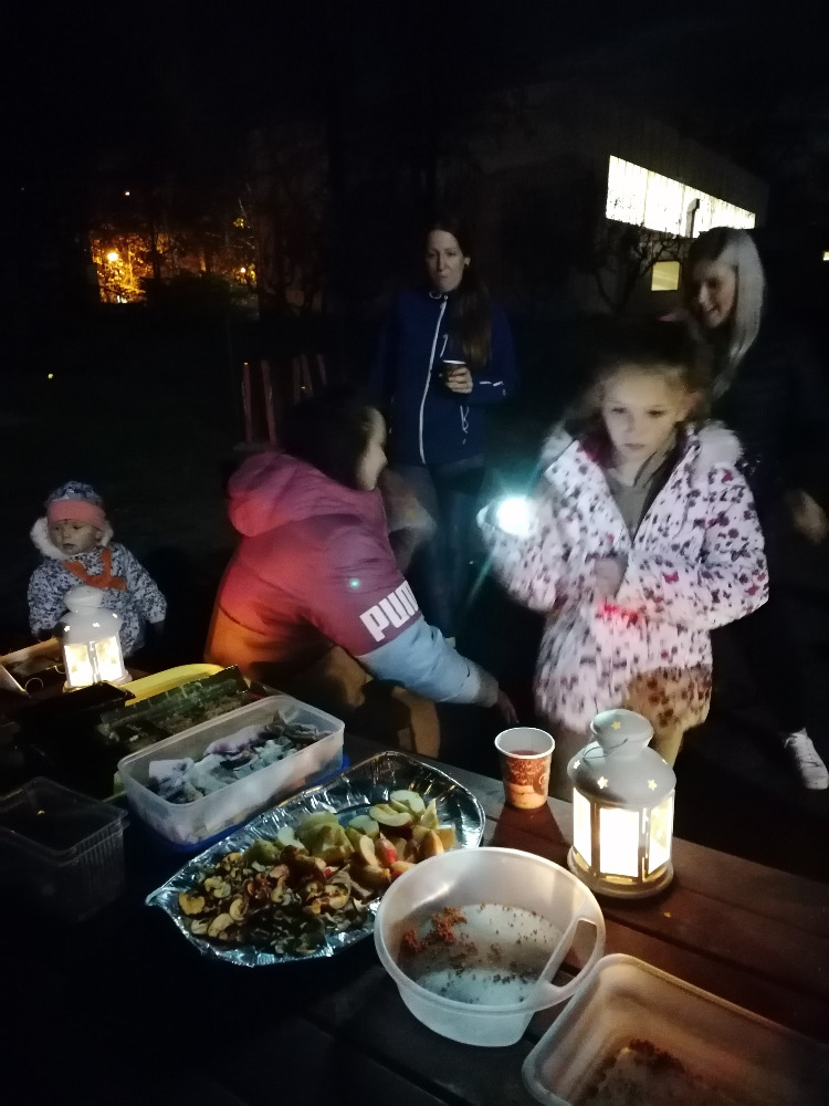 Ve čtvrtek 10.11., v předvečer sv. Martina, pořádala naše družina již tradiční Svatomartinský průvod. S rodiči a dětmi jsme se sešli před školou, kde jsme si připomněli příběh sv. Martina. Poté se již vydal průvod osvětlený lampionky do ulic města. Cílem průvodu byla školní zahrada, kde byl pro děti připraven kvíz s pranostikami a také občerstvení, takže zkrátka nepřišla ani naše bříška. Za správné vyluštění tajenky čekala na děti odměna a všichni si také domů odnášely svatomartinské balíčky.