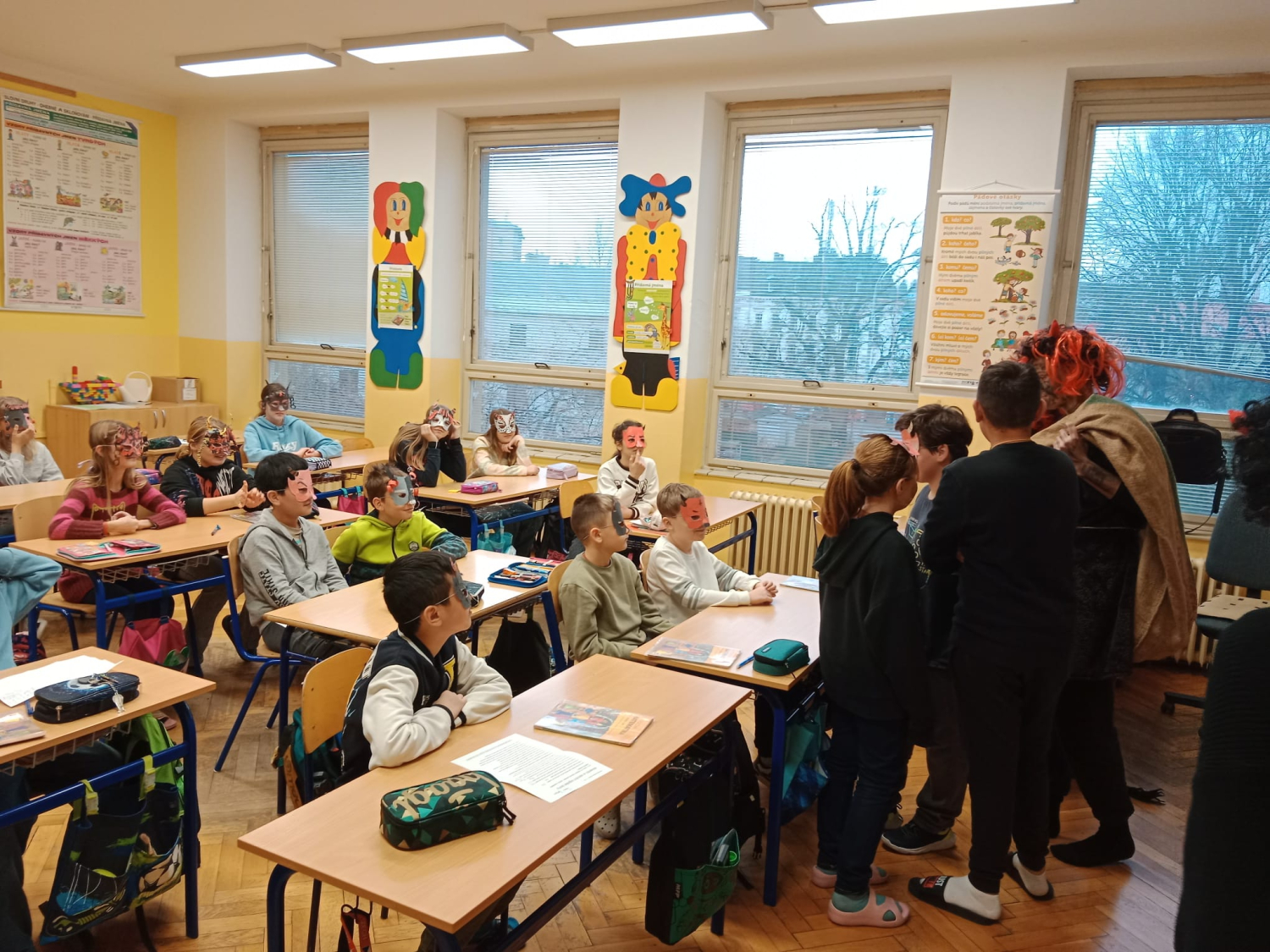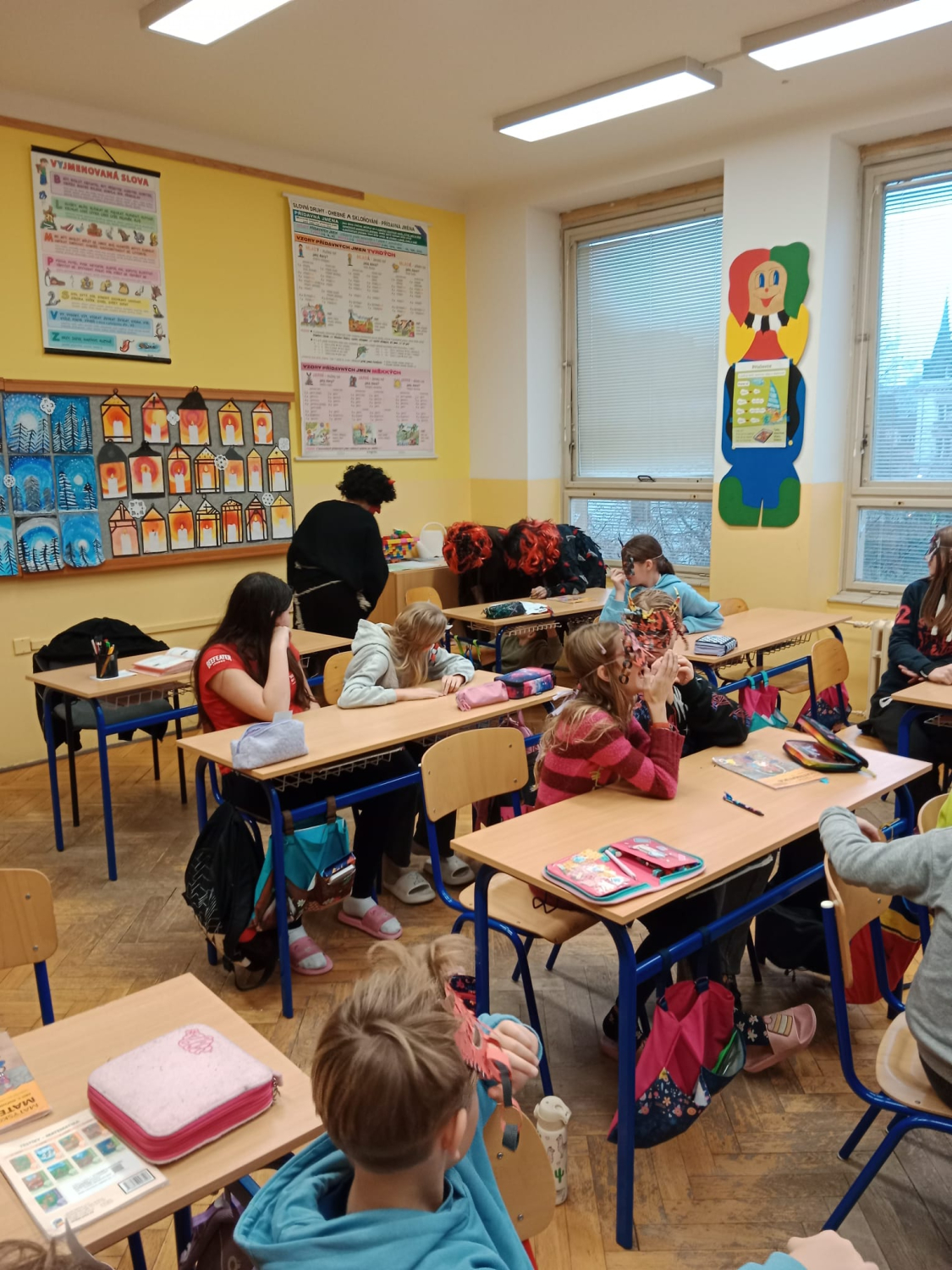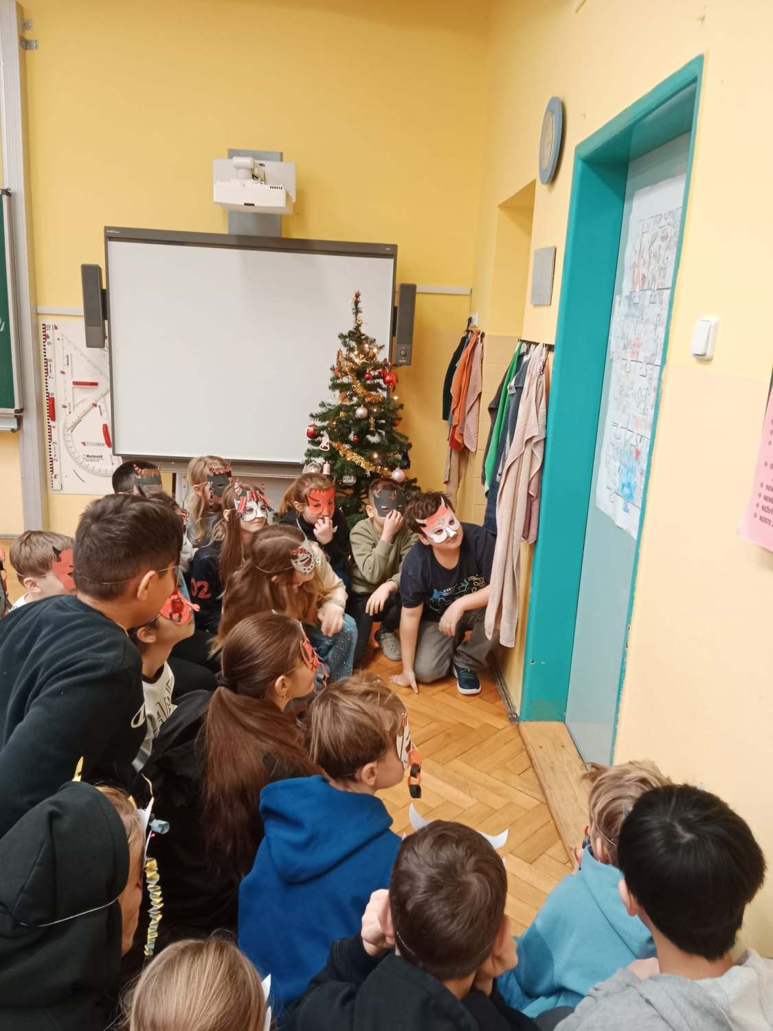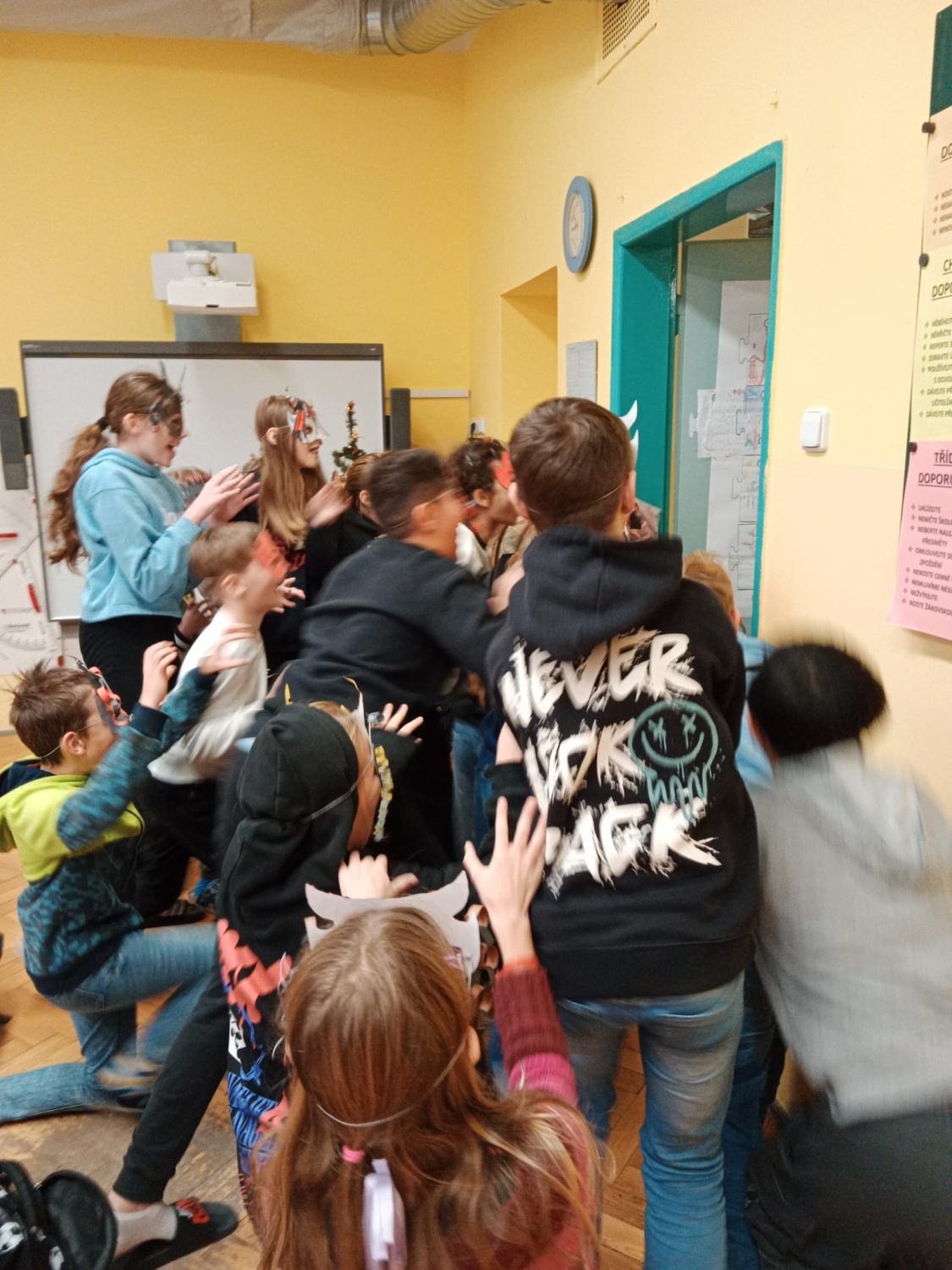 Dnes nás svou návštěvou potěšil Mikuláš se svou družinou. My jsme se ale na čerty připravili, vyrobili jsme si čertí masky a čerty s Mikulášem jsme pěkně vylekali. Někteří žáci skončili u čerta v pytli, Marek se ale nedal a před čerty utíkal, takže jsme byli svědky pořádné honičky mezi lavicemi. Moc jsme se všichni nasmáli.