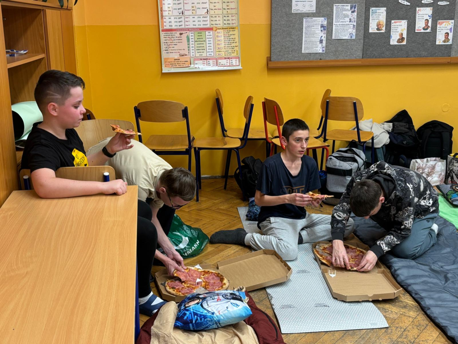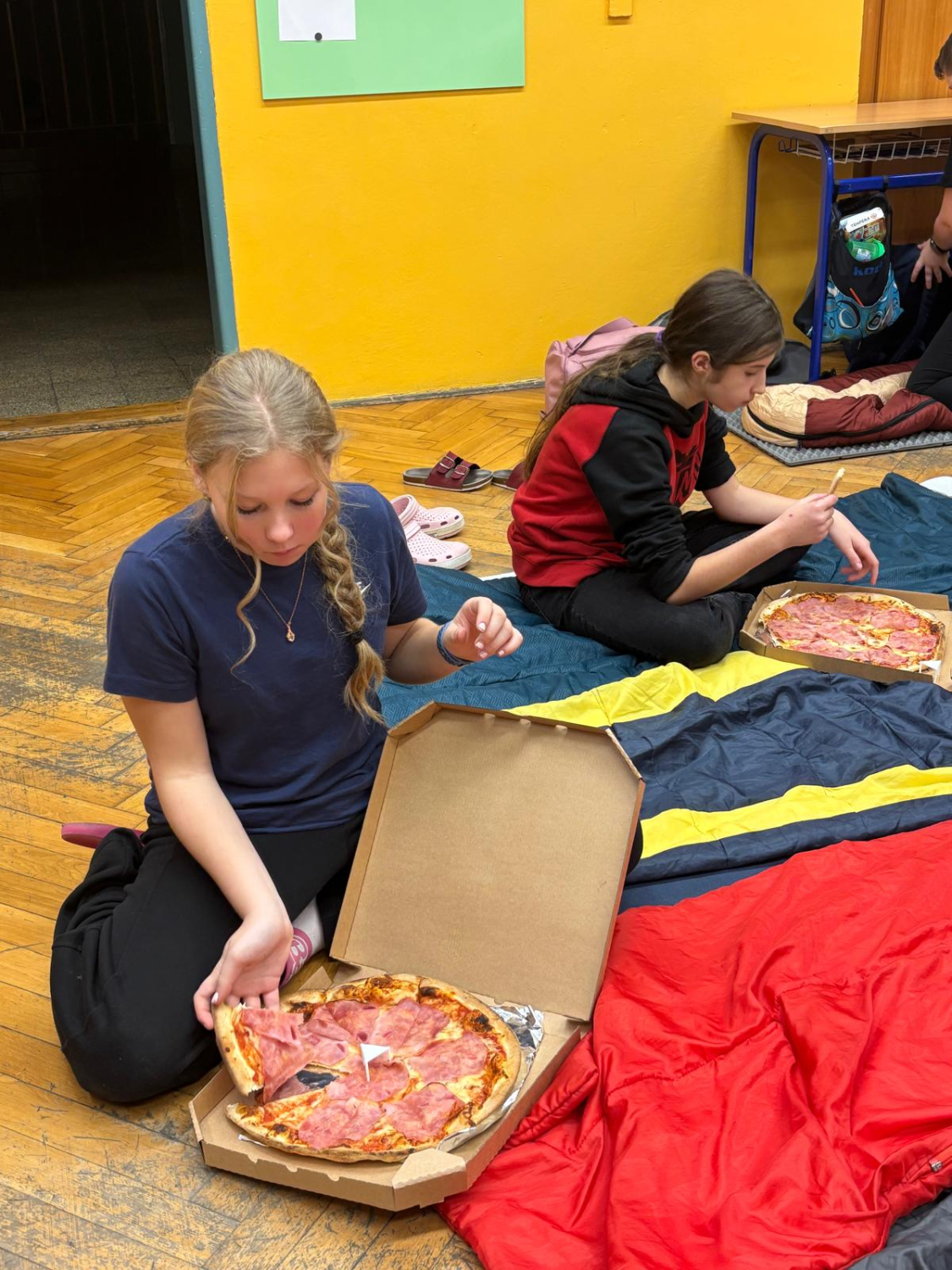 Po téměř roce jsme opět strávili noc ve škole, tentokrát ve škole prázdné, temné, tajuplné. V rámci Halloweenské detektivky děti ve skupinách pátraly po vrahovi. Vzhledem k náročnosti úkolů, byli za hledání všichni odměněni drobnými odměnami. Po po pátrání jsme se s chutí zakousli do pizzy a s filmem jsme všichni postupně usnuli- teda skoro :-).