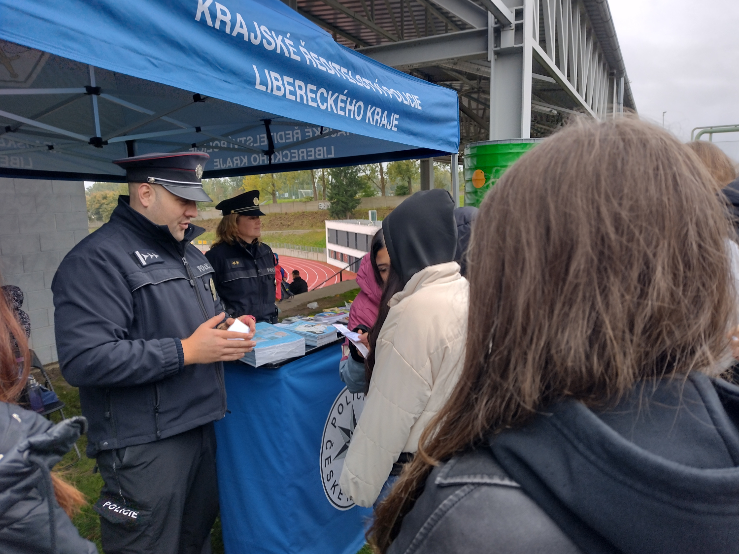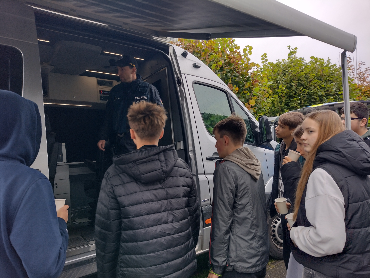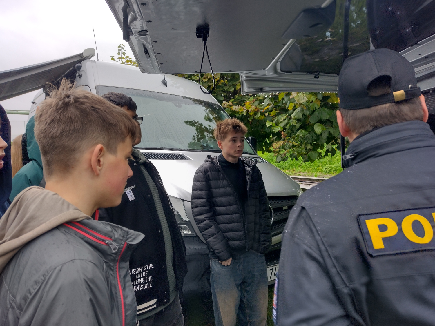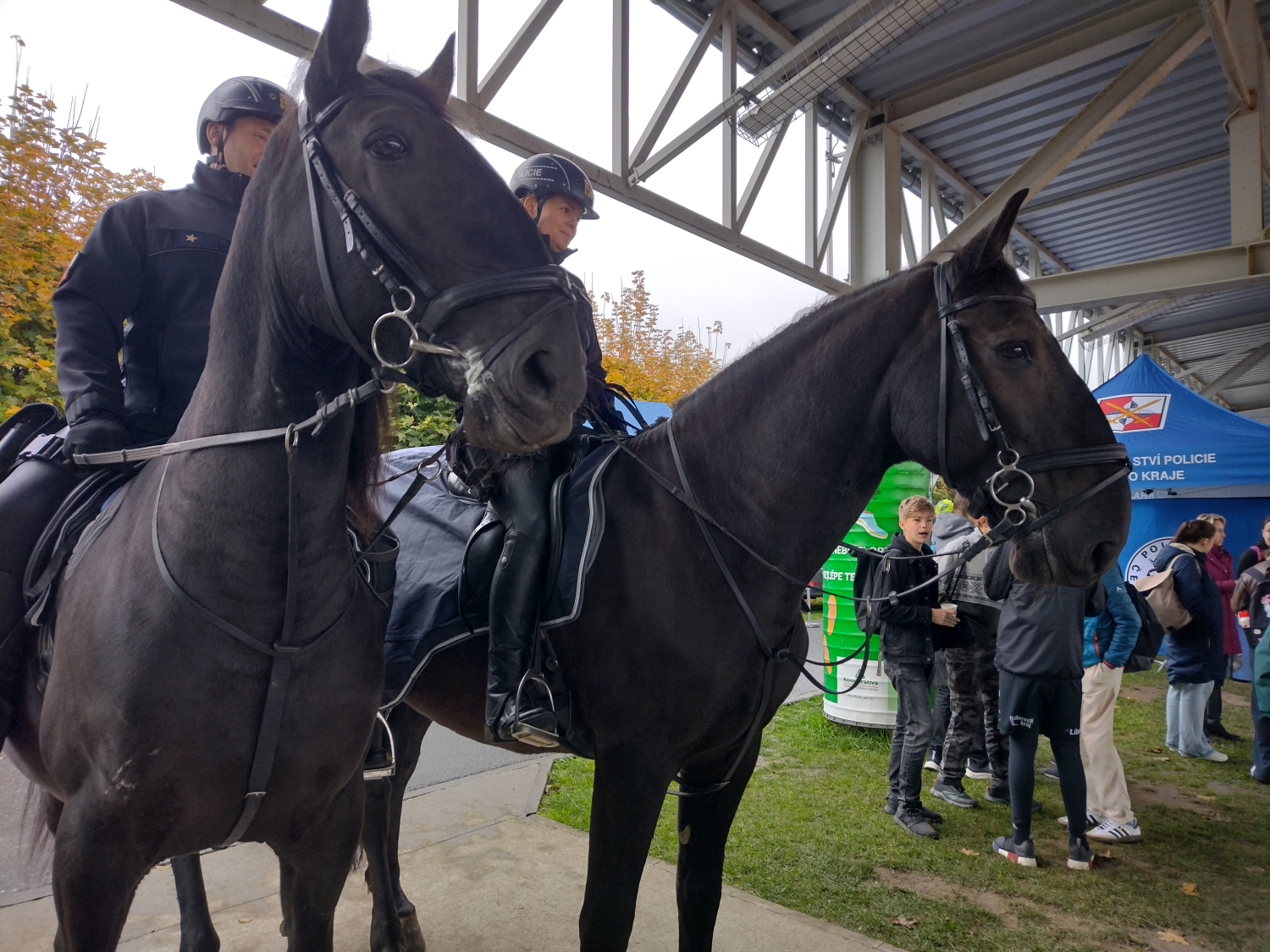 Ostatní si zatím mohli prohlédnout různé policejní složky, které se tady představily. Mezi nejzajímavější patřily určitě drony, sledovací zařízení, policisté na koních nebo zbraně. Zajímavý byl i "test" o trestní zodpovědnosti, kdy ne všichni uměli správně odpovědět na otázky, kdy se jedná o trestný čin a kdy jen o přestupek. Celou akci nám znepříjemnilo studené a deštivé počasí, přesto si každý mohl odnést hodně zajímavých informací.