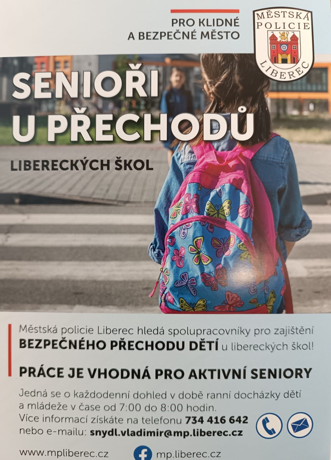 Městská policie, která u nás pravidelně pořádá přednášky pro žáky, se na nás obrátila s prosbou o spolupráci. Hledají dobrovolníky na ranní dohled u přechodů pro chodce v blízkosti škol - včetně té naší. Jedná se o jednoduchou činnost vhodnou pro aktivní seniory.