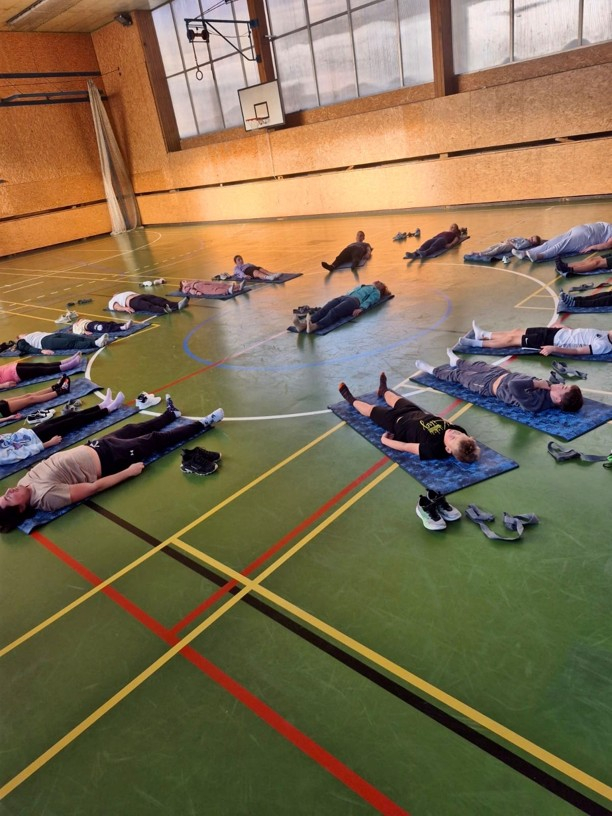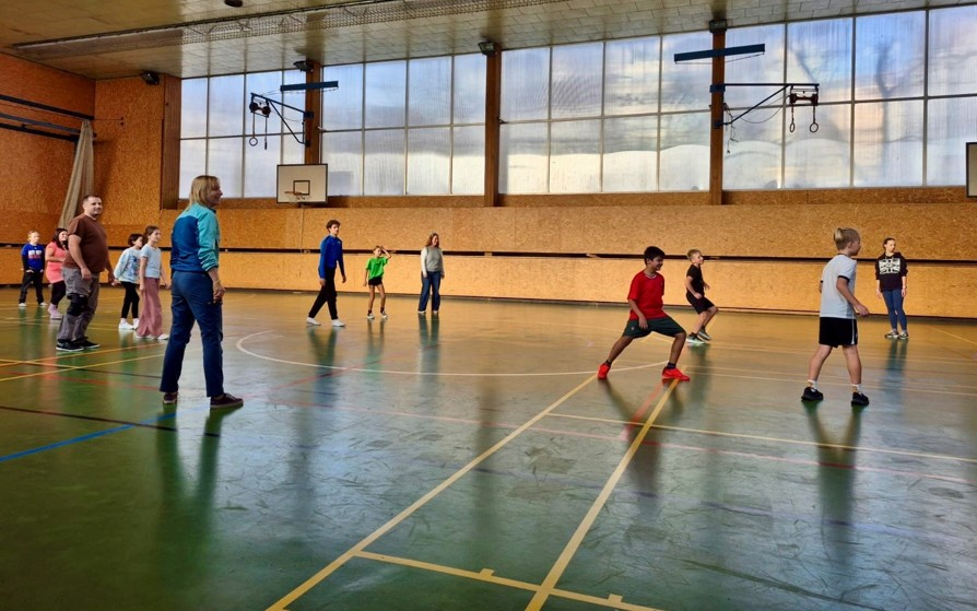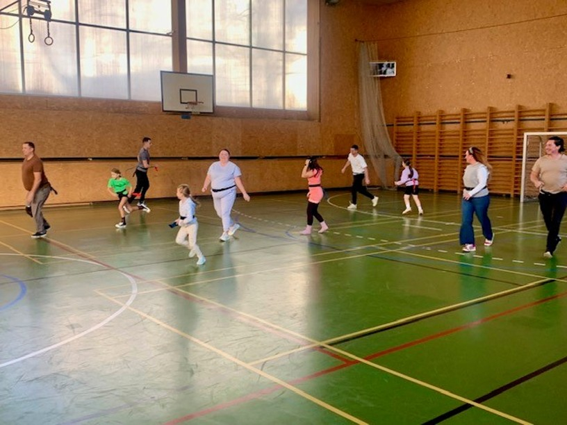 Někteří žáci a rodiče dnes vyměnili gauče za tělocvičnu a společně protáhli nejen těla, ale i bránice smíchem.