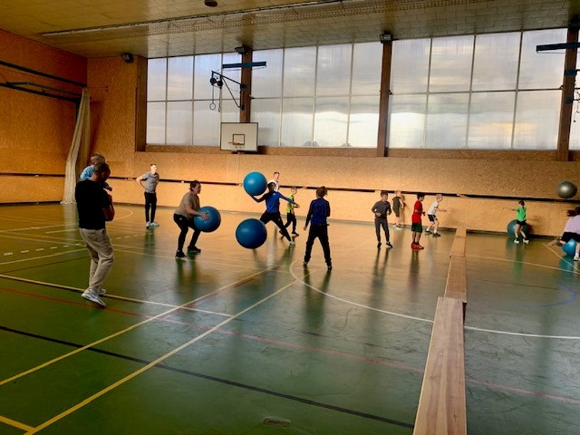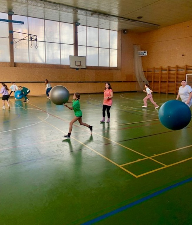 • Hry s velkými míči: děvčata + maminky vs. chlapci + tatínkové. Ukázalo se, že maminky mají strategii a chlapci s tatínky zase sílu a nadšený chaos.