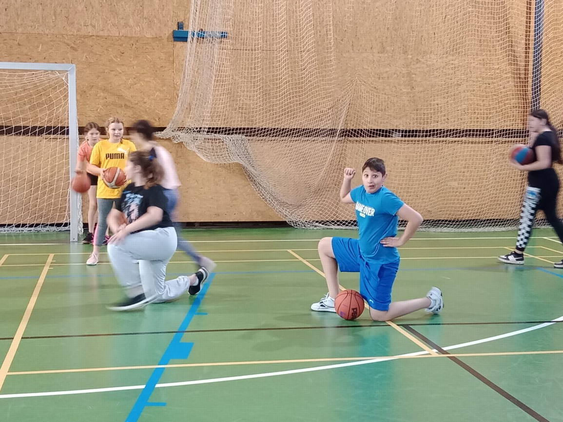 Dnes jsme měli další hodinu basketballu s profesionálním trenérem. Děti dostaly pořádně zabrat, je dobře poznat, kdo ve volném čase sportuje a kdo jen sedí doma u počítače nebo u televize.