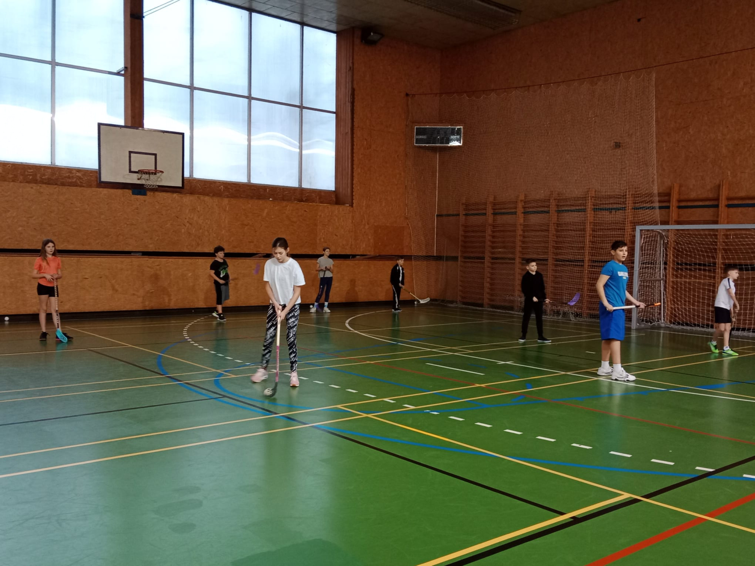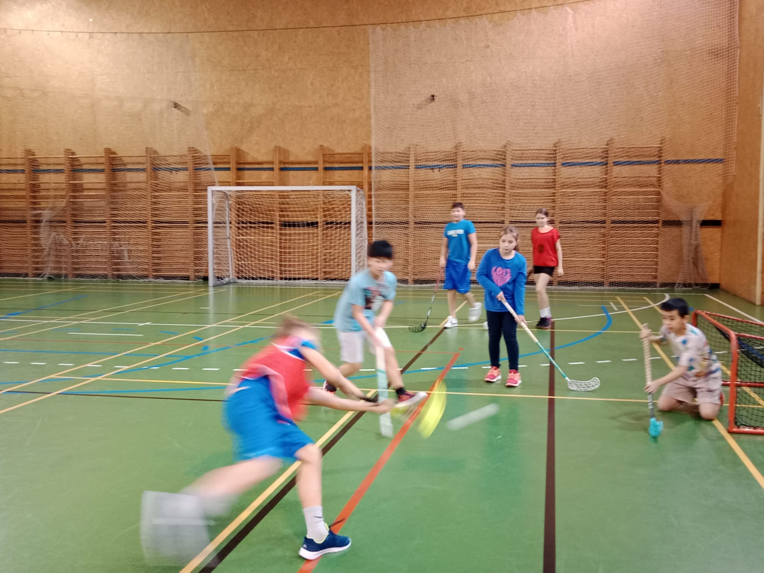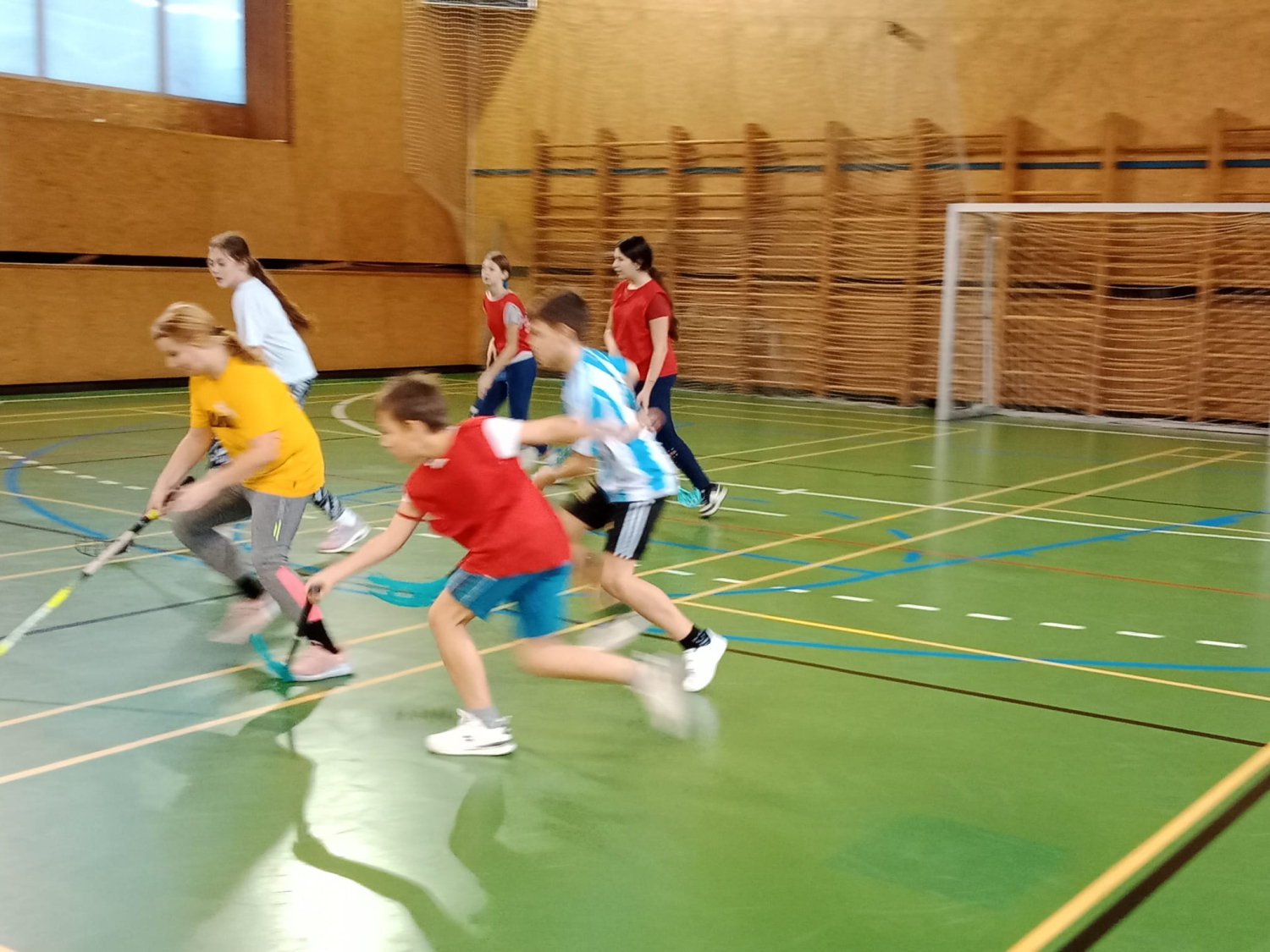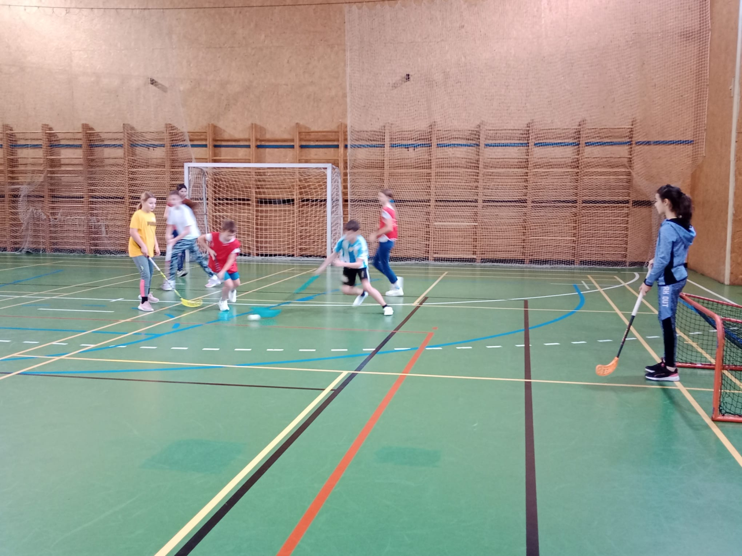 Další sport, který jsme si vyzkoušeli, je florbal. Některé děti už hrají florbal i ve volném čase, tak jim to šlo skvěle.