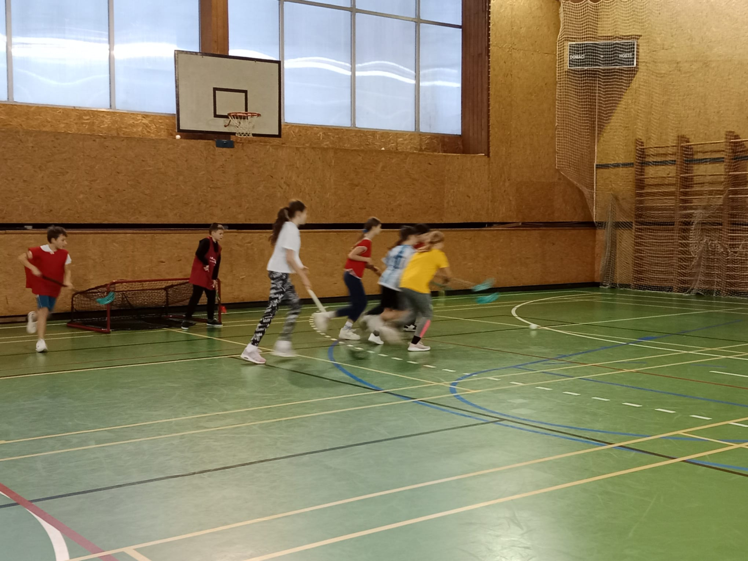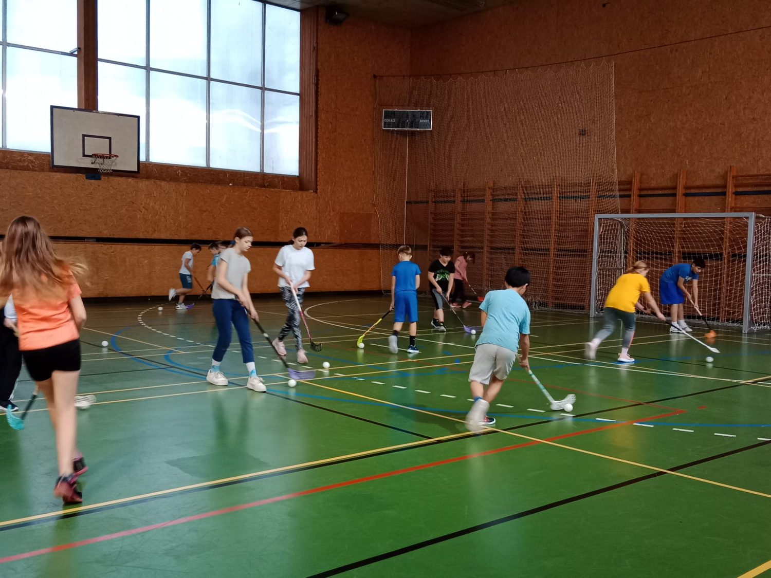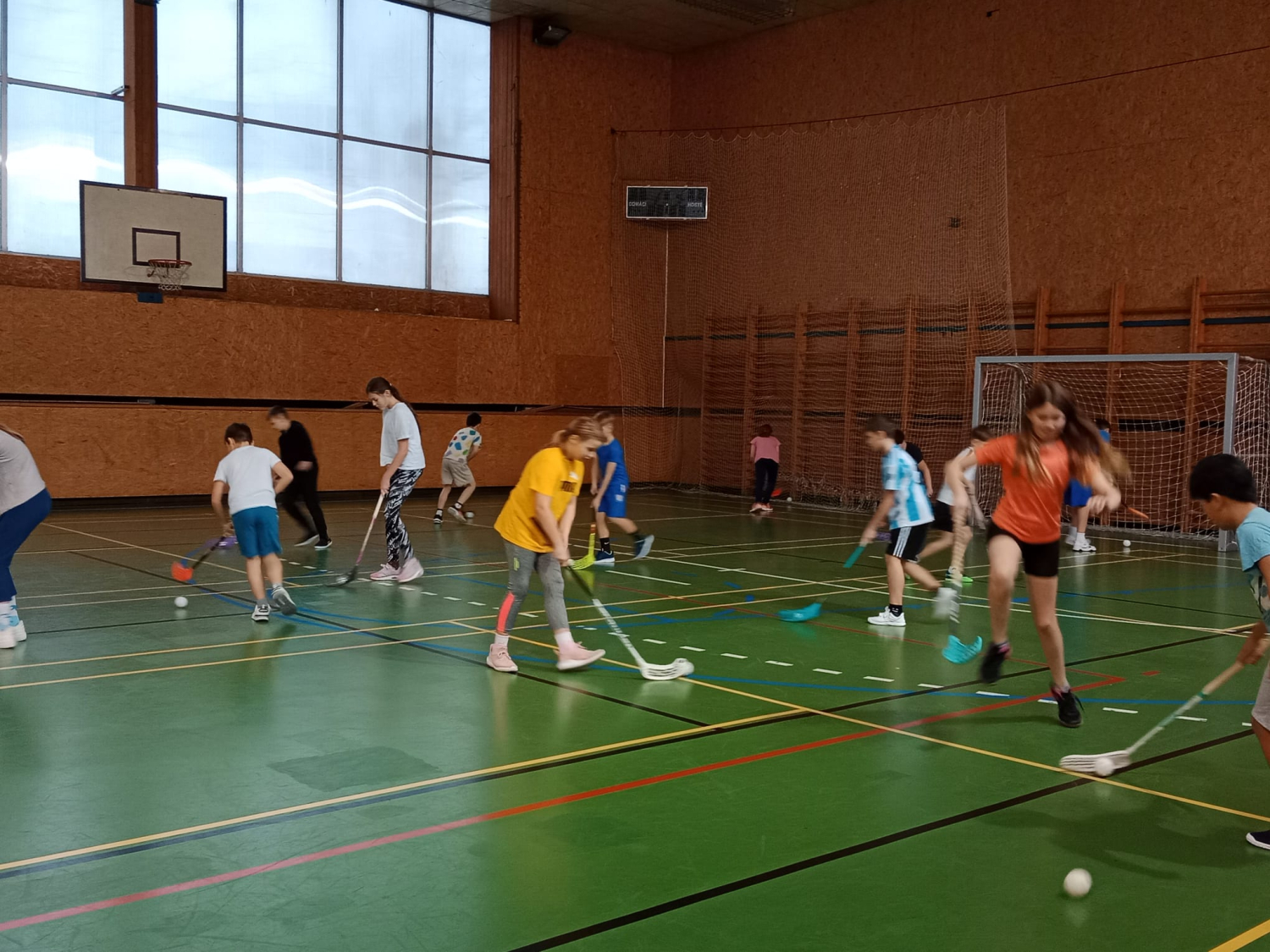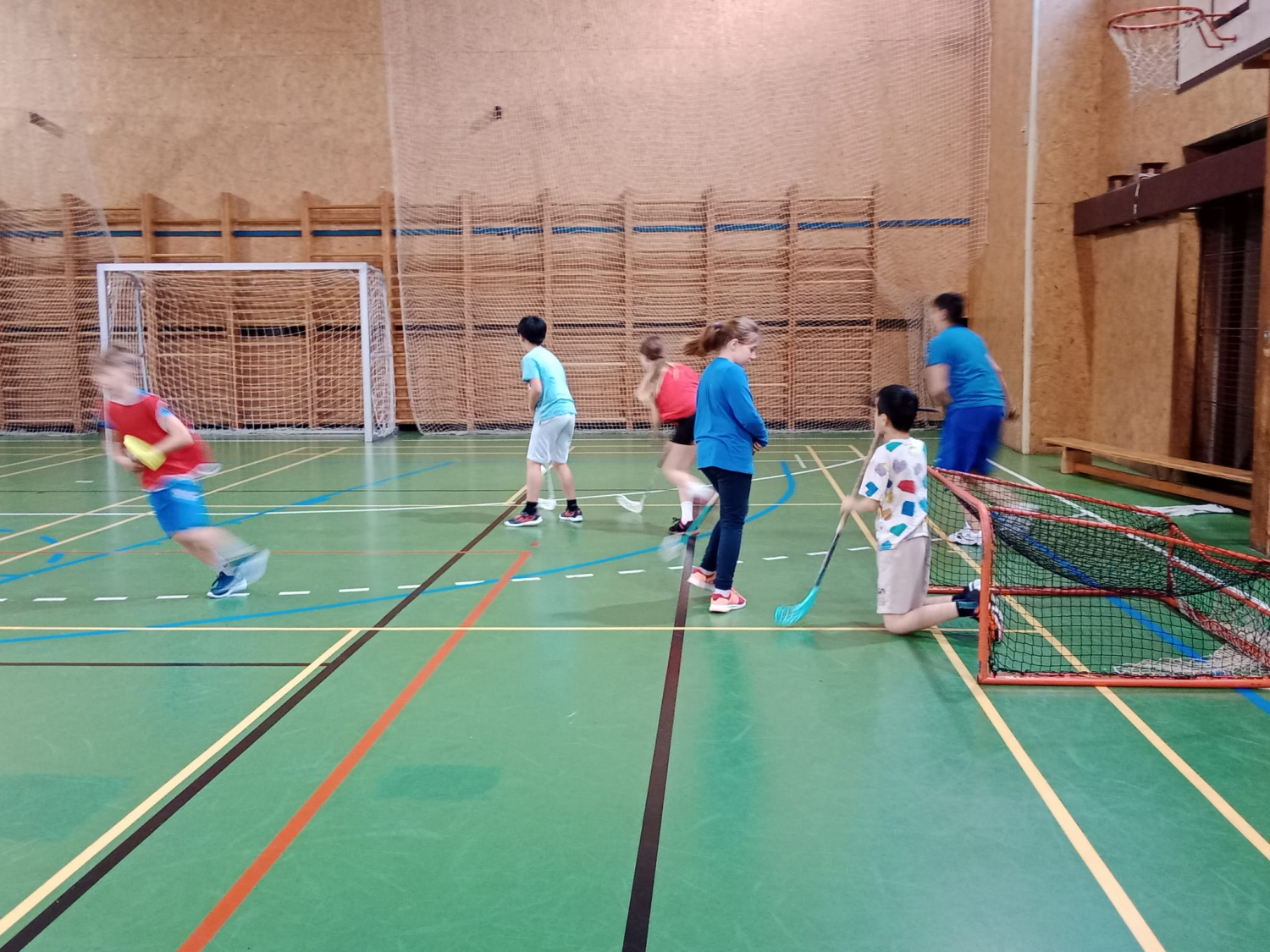 Další sport, který jsme si vyzkoušeli, je florbal. Některé děti už hrají florbal i ve volném čase, tak jim to šlo skvěle.