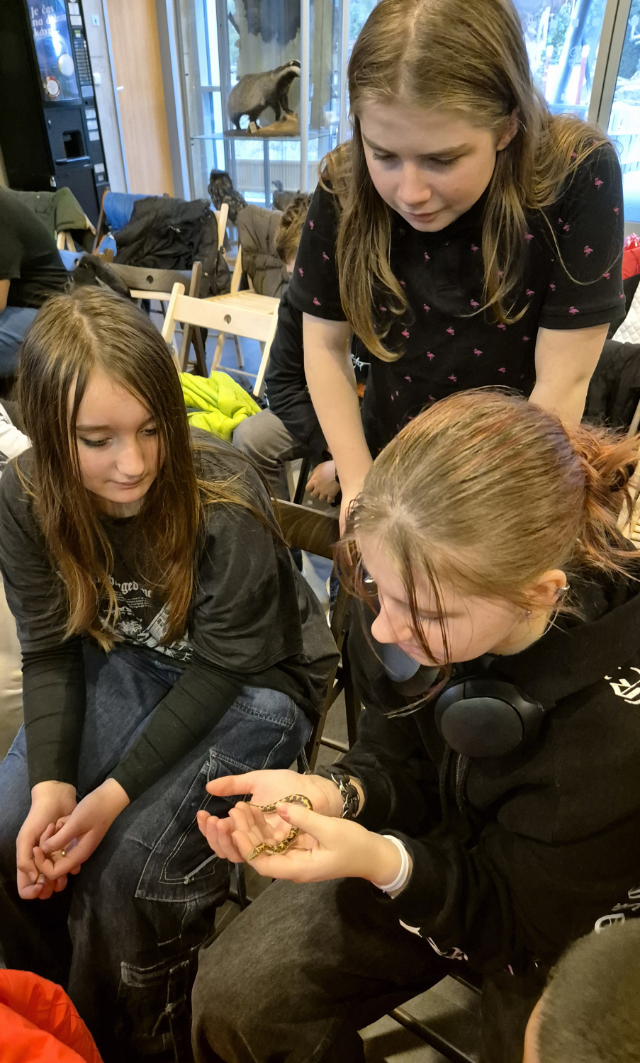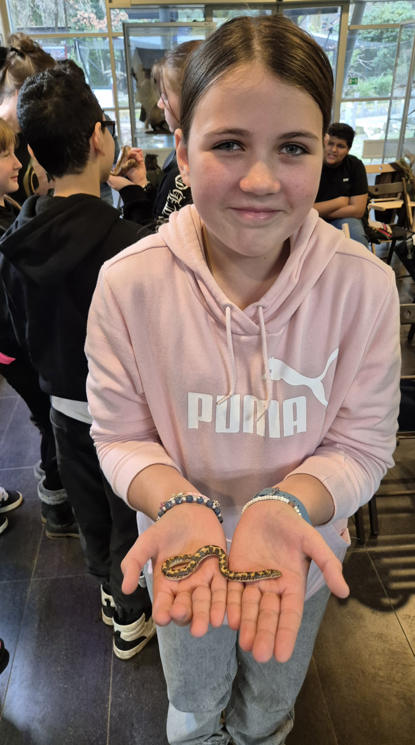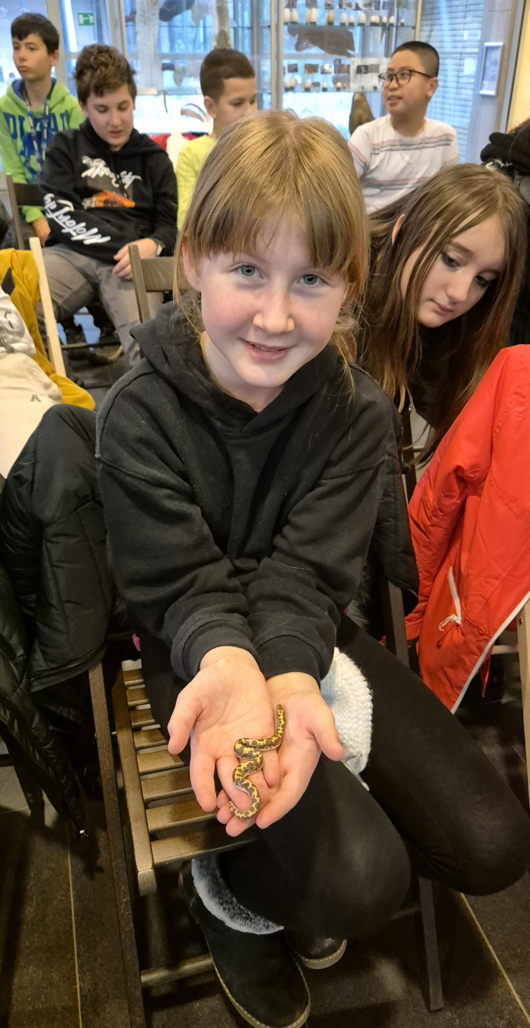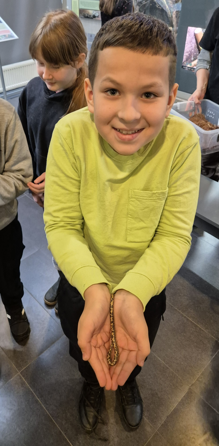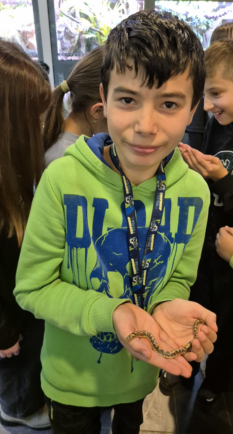 Dnes jsme se účastnili v Zoo Expo zajímavé přednášky o užovkovitých hadech. Žáci tak měli možnost se dozvědět základní rozdíl mezi užovkou a zmijí, také jim byly představeny čtyři druhy užovek, které mohou v české přírodě potkat. Někteří nadšenci se chtěli s malou užovkou vyfotit. Žákům se tento program moc líbil a mají další skvělý zážitek