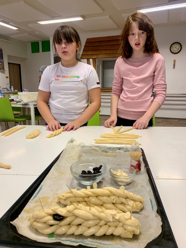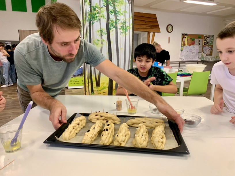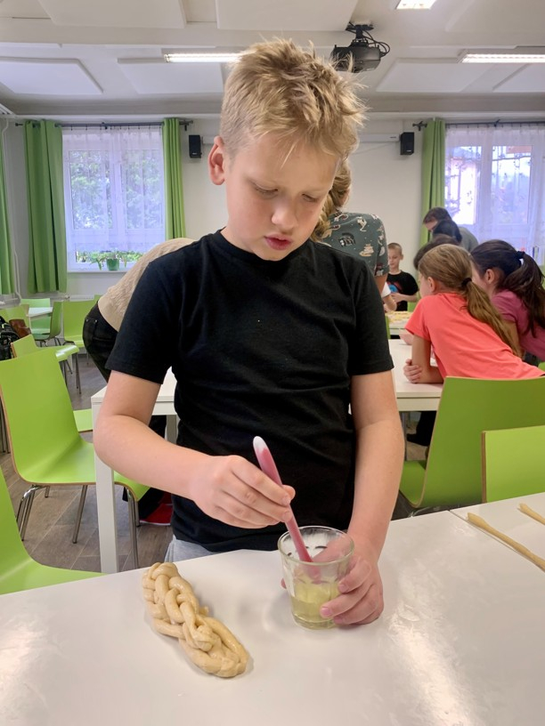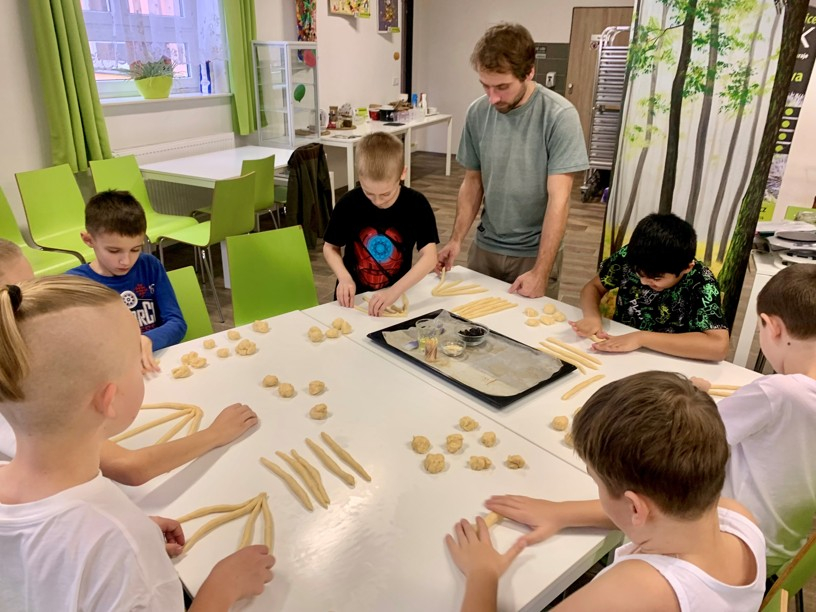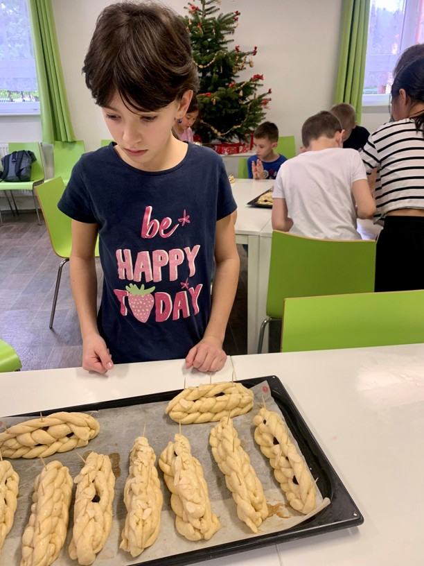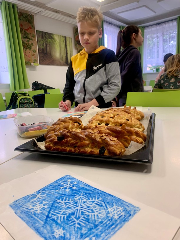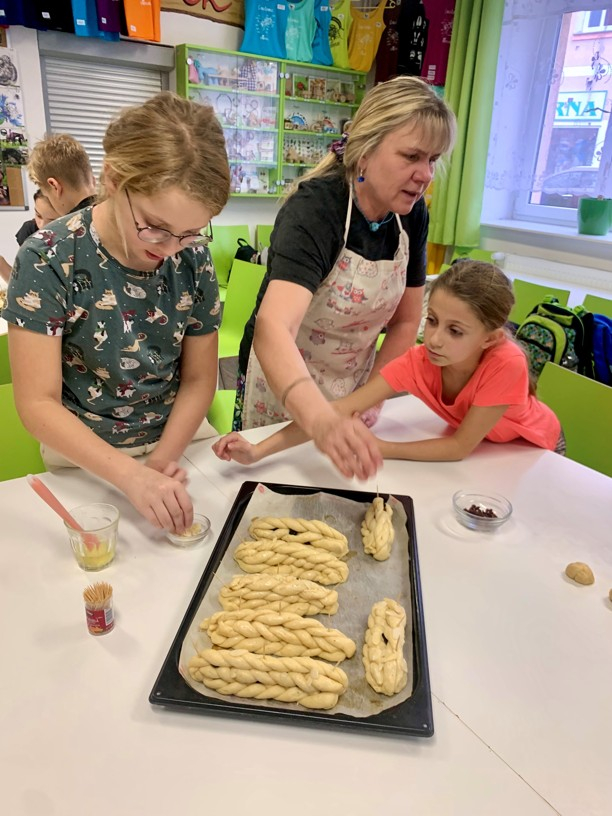 Mikuláš ztratil plášť .............. ten, kterého potkala paní učitelka ztratil 2 velké pytle sladkostí, které nám zpříjemnily cestu do Hejnic. Tam nás už vyhlíželi. Čekal nás program s názvem Vánoční pečení. Hned se zadělávalo těsto na vánočky, aby stačilo vykynout. Díky vzájemné spolupráci jsme to zvládli, následně si každý sám vánočku zamotal a nechal upéct. Ale to nebylo vše! Během kynutí těsta jsme si povídali o českých tradicích. Dobu pečení jsme využili na seznámení se zajímavými vánočními zvyky v jiných koutech světa. Nakonec si děti ozdobily papírové sáčky na vánočku vánočními motivy. Naše vánočky provoněly celý vlak. Akce se nám velmi líbila. Jistě si dnes na vánočce doma společně s rodinou všichni pochutnáme.