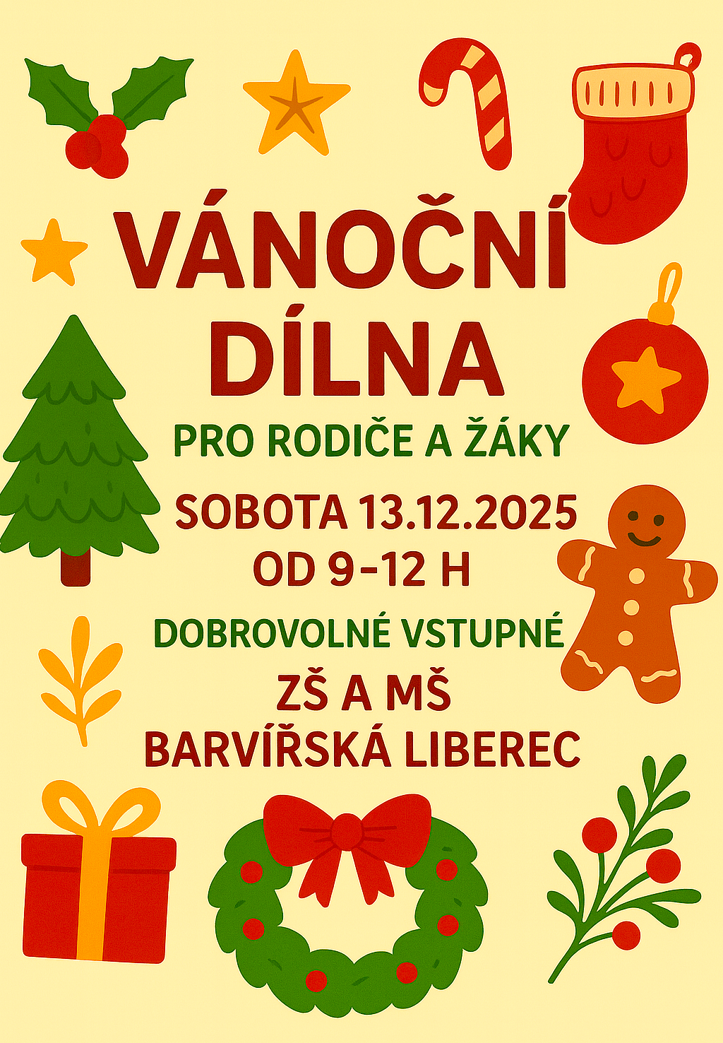 Srdečně zveme rodiče a žáky na Vánoční dílnu.
