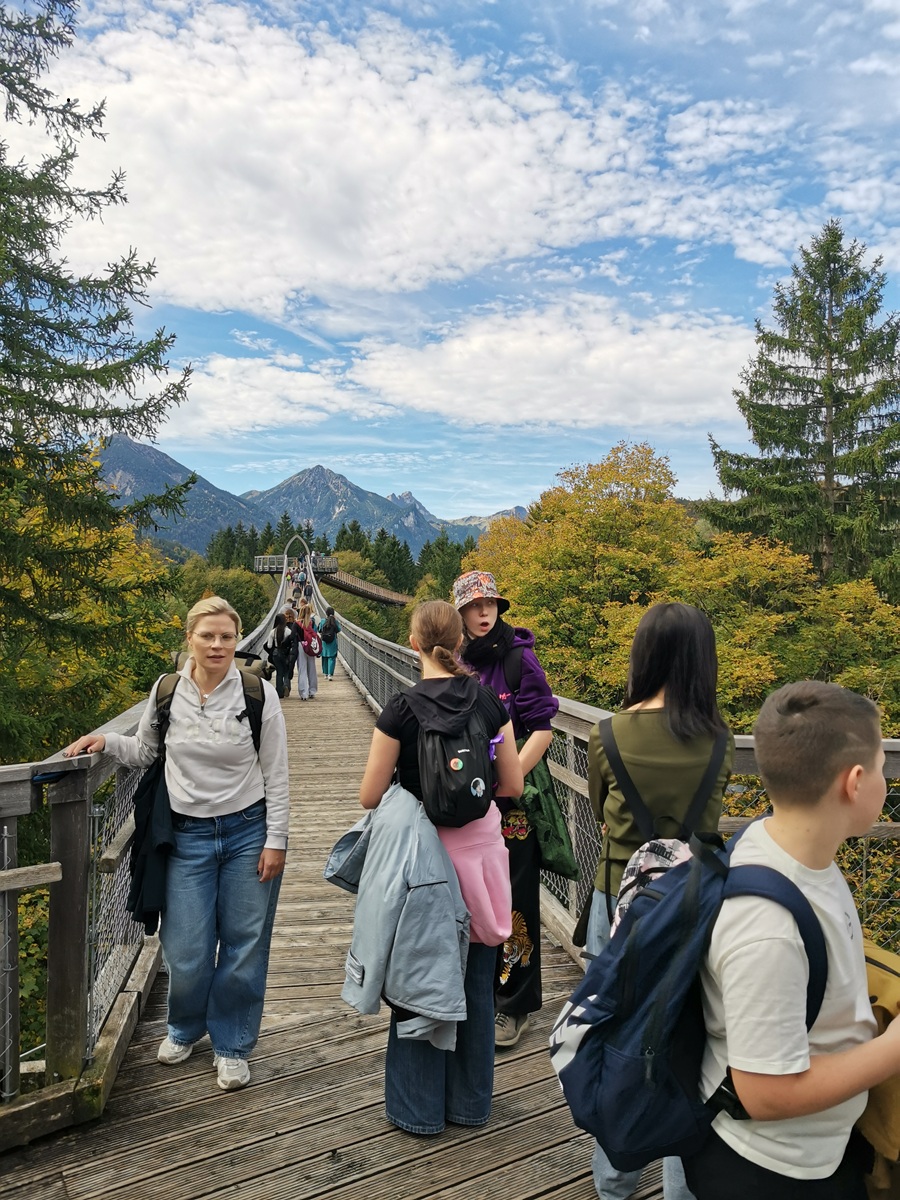 Během dalších dnů jsme objevovali krásy města i jeho okolí. Navštívili jsme například Fuggerei, nejstarší sociální bytový komplex na světě, a podnikli celodenní výlet do městečka Füssen, kde jsme z místního zážitkového lesoparku obdivovali Alpy.