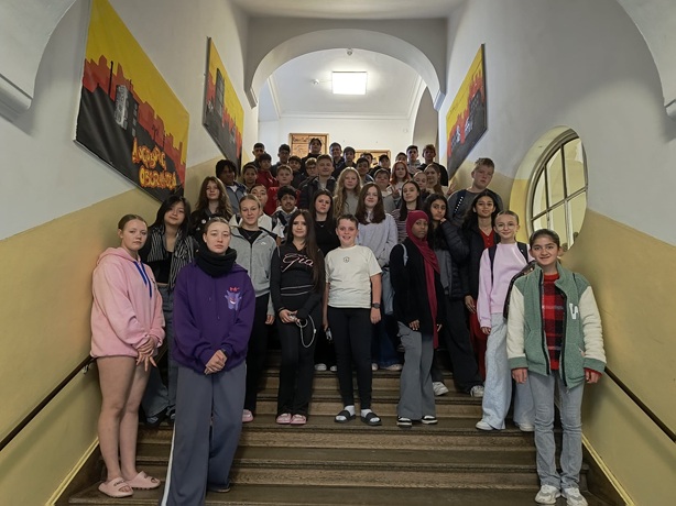 První říjnový týden se skupina našich žáků ze 7., 8. a 9. tříd zúčastnila pětidenního pobytu v německém Augsburgu, který se mohl uskutečnit díky podpoře Česko-německého fondu budoucnosti a Spolku rodičů, přátel a dětí školy. Ubytováni jsme byli přímo ve škole Kappelen-Mittelschule, kde nás čekal bohatý program připravený místními učiteli.