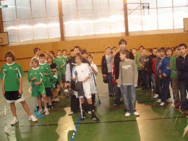 V úterý 16.11.2010 jsme vstoupili do florbalového kolotoče prvním turnajem. Naším cílem bylo postoupit do dalších kol, proto jsme nechtěli nic nechat náhodě a zodpovědně přistoupit ke každému utkání. To se nám podařilo a my jsme po třech vítězstvích (nad ZŠ KOBYLY, ZŠ VRATISLAVICE a ZŠ HUSOVA) slavili postup. Střelecky se zadařilo zejména Bencikovi - autor 8 branek.