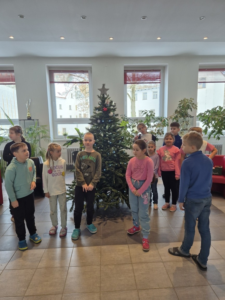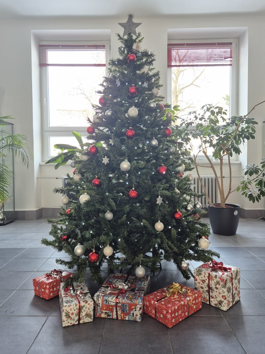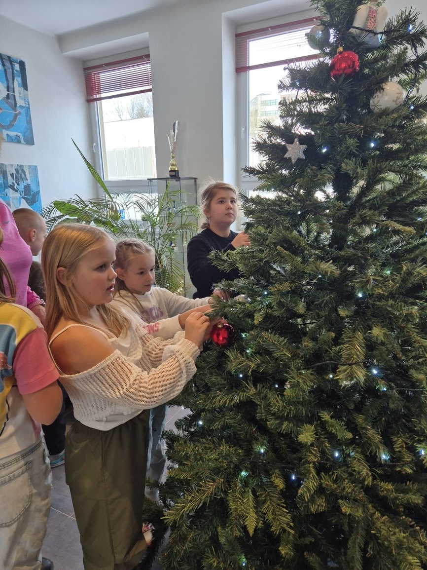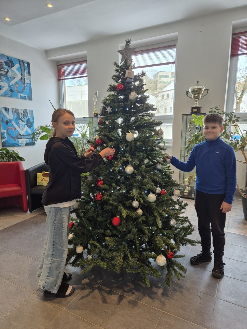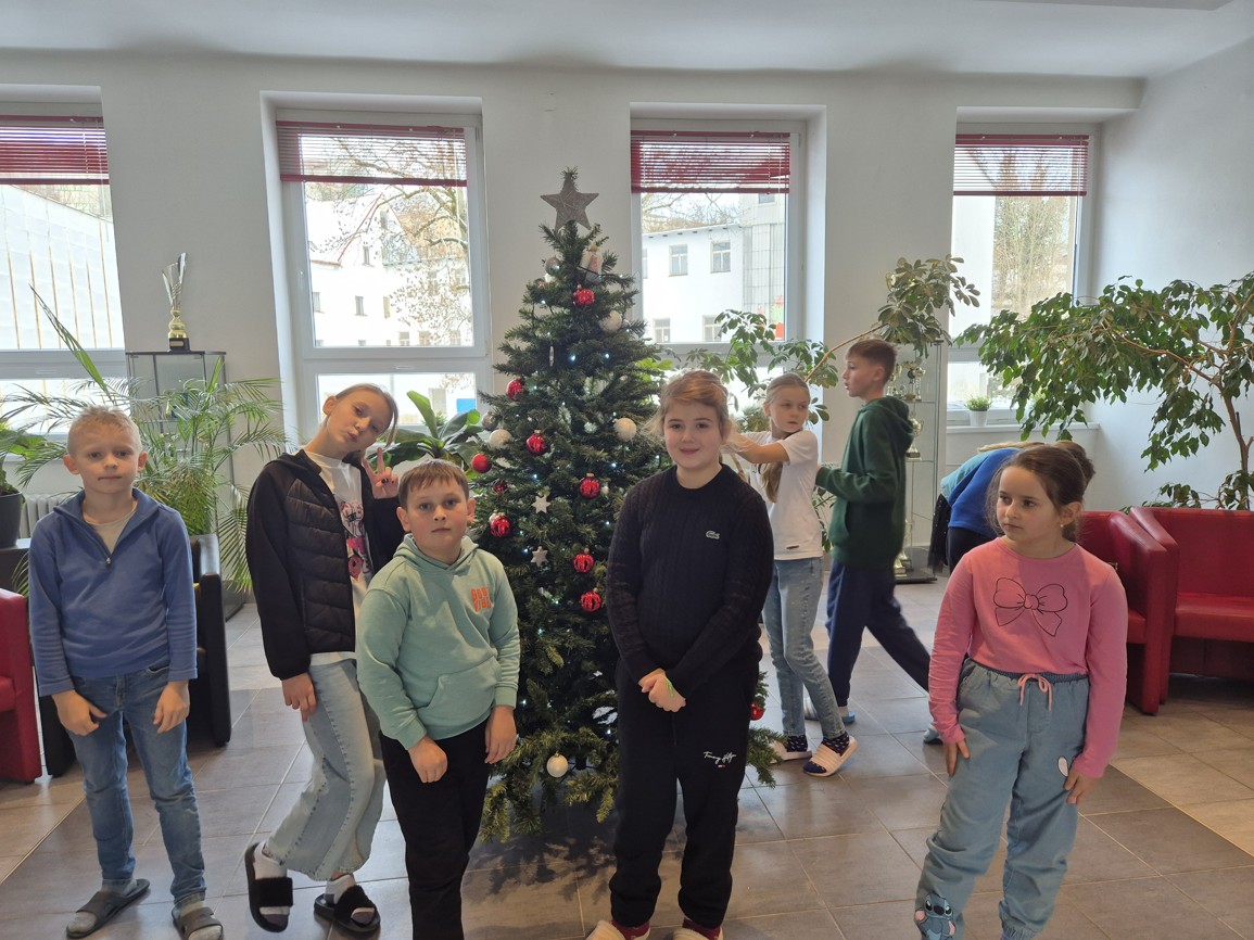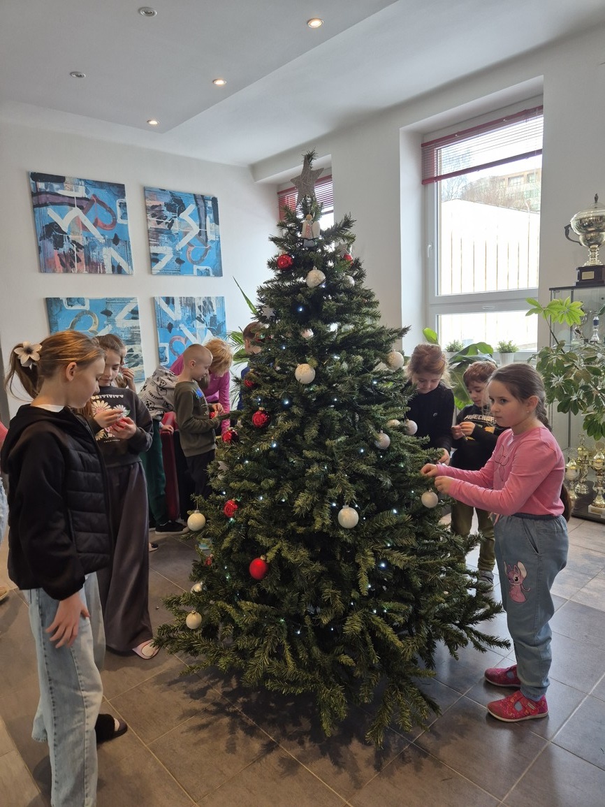 Dnes žáci naší školy ozdobili pro své spolužáky vánoční stromeček ve vestibulu.