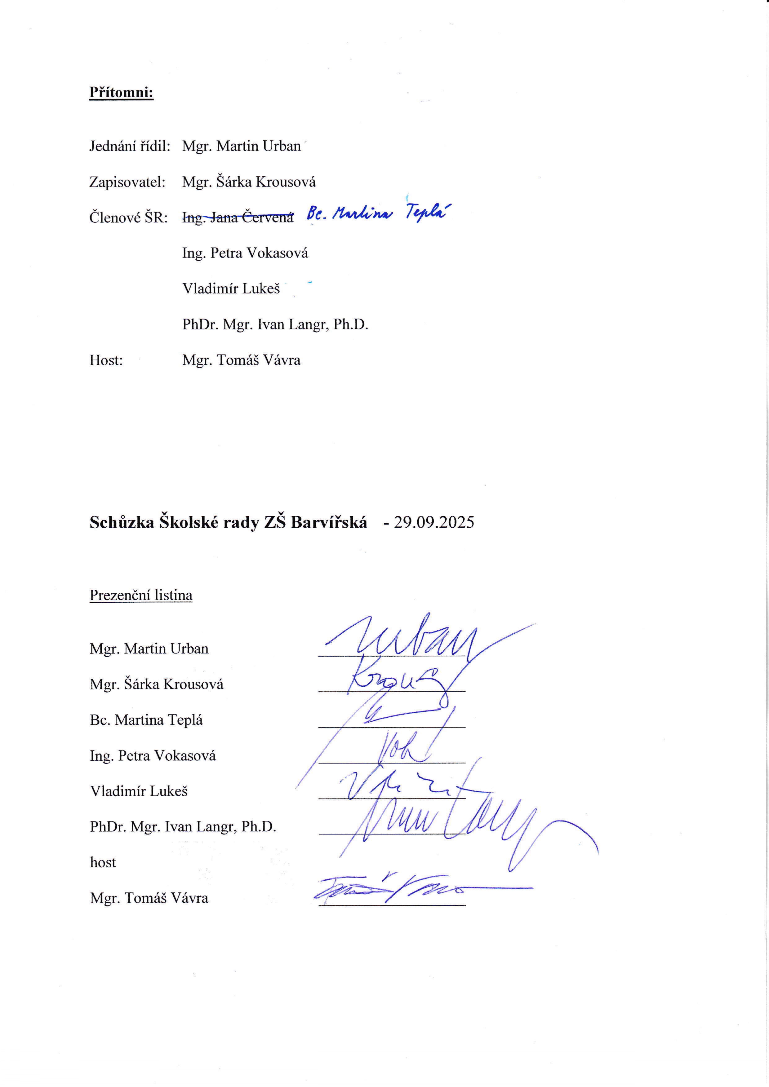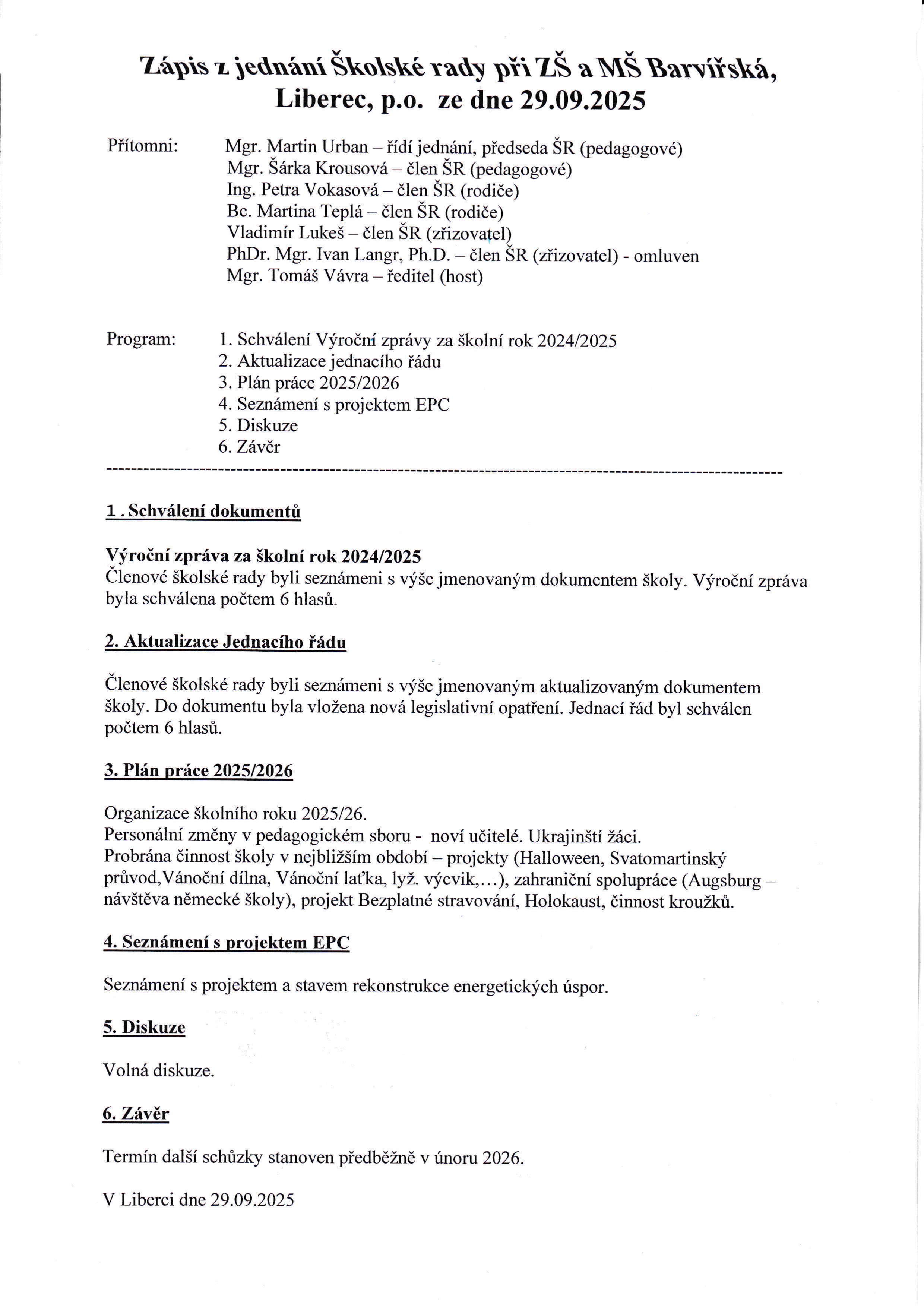 ŠKOLSKÁ RADA ZŠ a MŠ Barvířská, Liberec, p.o.: