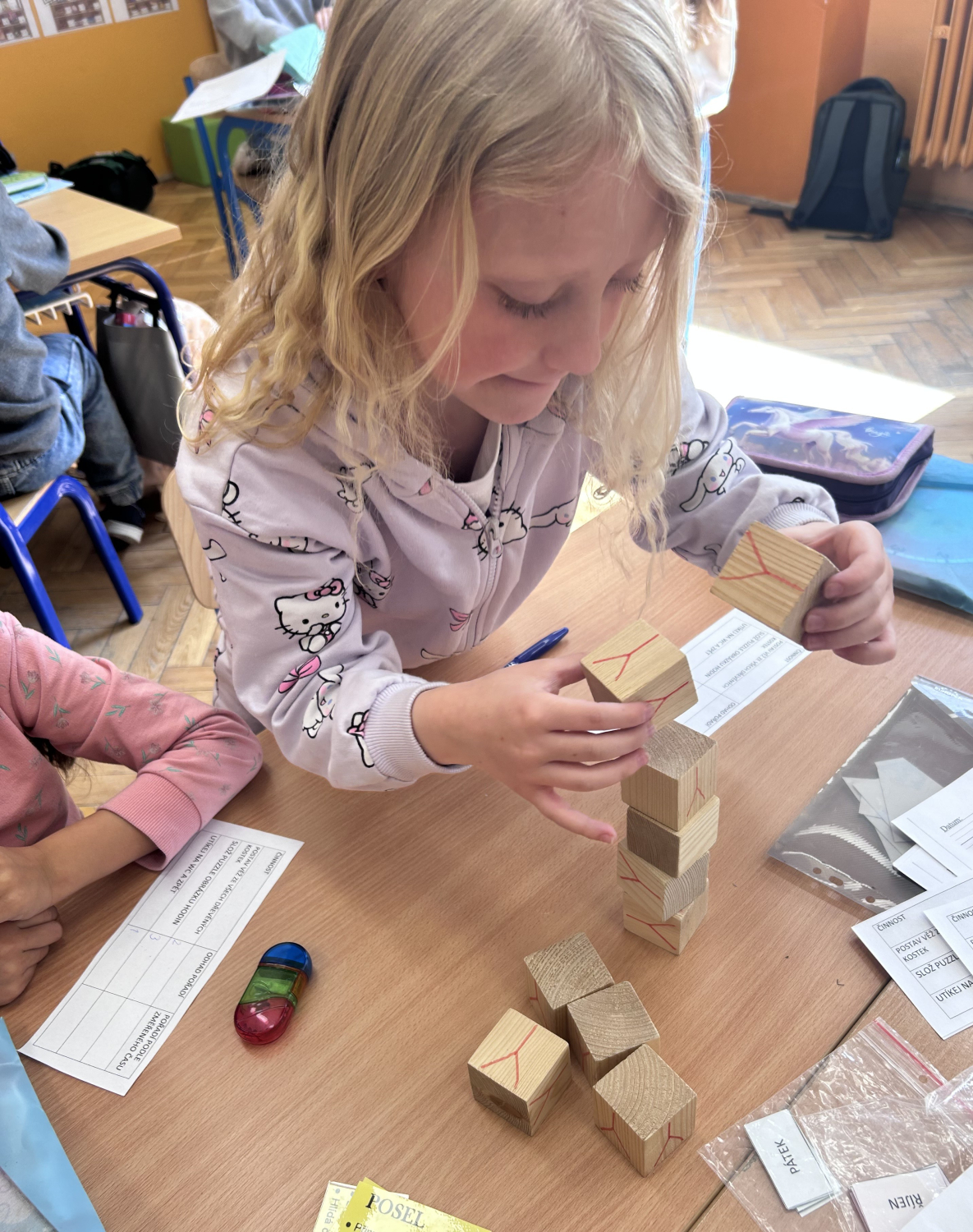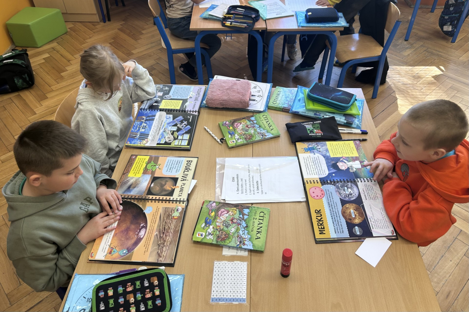 Opět jsme se rozdělili do pěti skupinek a pracovali v centrech aktivit . Tentokrát na téma ČAS. V ateliéru jsme tvořili hodinky na ruku z papíru a modelovali ciferník. Ve čtení jsme se zabývali denním režimem a odpovídali na otázky k přečtenému textu, nechyběla tajenka. V centru psaní jsme zjišťovali informace o oblíbenosti ročních období u našich spolužáků a údaje zapisovali do tabulky. Také jsme museli seřadit věty do správného pořadí ta, jak je ve dne za sebou vykonáváme. V centru matematiky jsme vypočítali spoustu příkladů a rozluštili tak tajenku. Podle kartiček jsme určovali digitální čas a ukazovali čas na papírových hodinách. V centru objevů jsme nejprve odhadli pořadí časové náročnosti u tří úkolů. Poté jsme úkoly plnili a měřili čas jejich splnění. Výsledný čas jsme porovnali s naším odhadem. Také jsme seřadili kartičky s názvy měsíců a kartičky s názvy dnů v týdnu. Správně seřazené řady jsme opisovali na linkovaný papír. Nakonec jsme si zhodnotili spolupráci v týmech a dodržování půlmetrového hlasu.