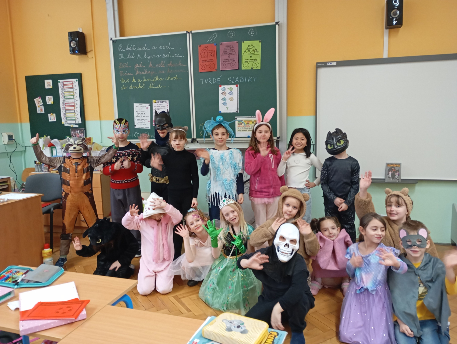 Následovala promenáda masek, hry a soutěže za razítka, závěrečný taneční rej masek a ve třídě na děti za splněné úkoly čekaly sladké odměny. Tou nějvětší byl masopustní koblížek a další drobnosti.