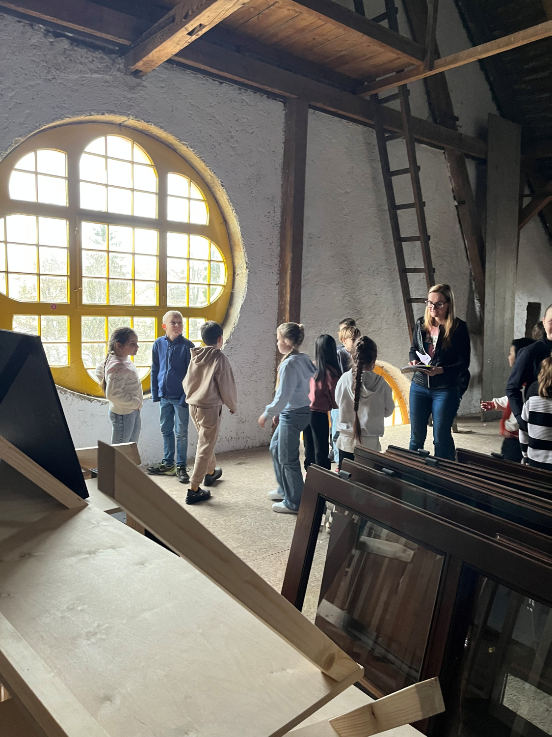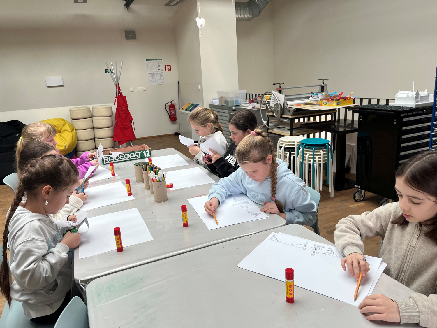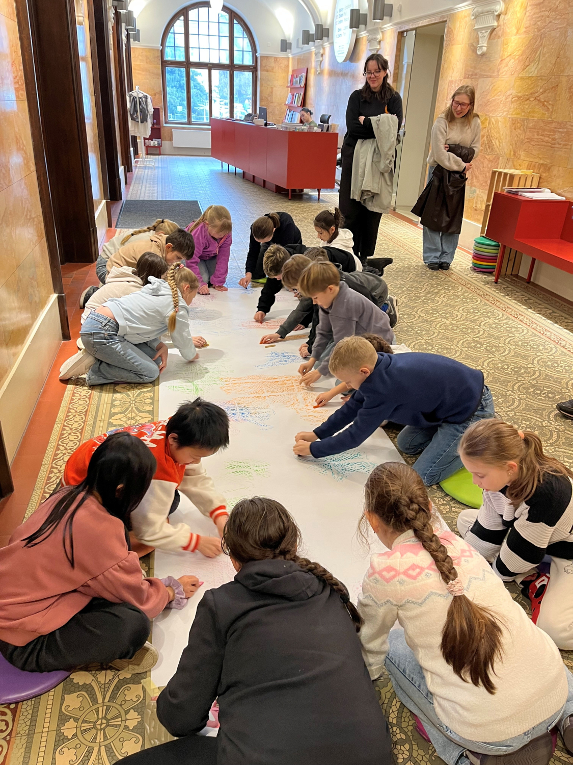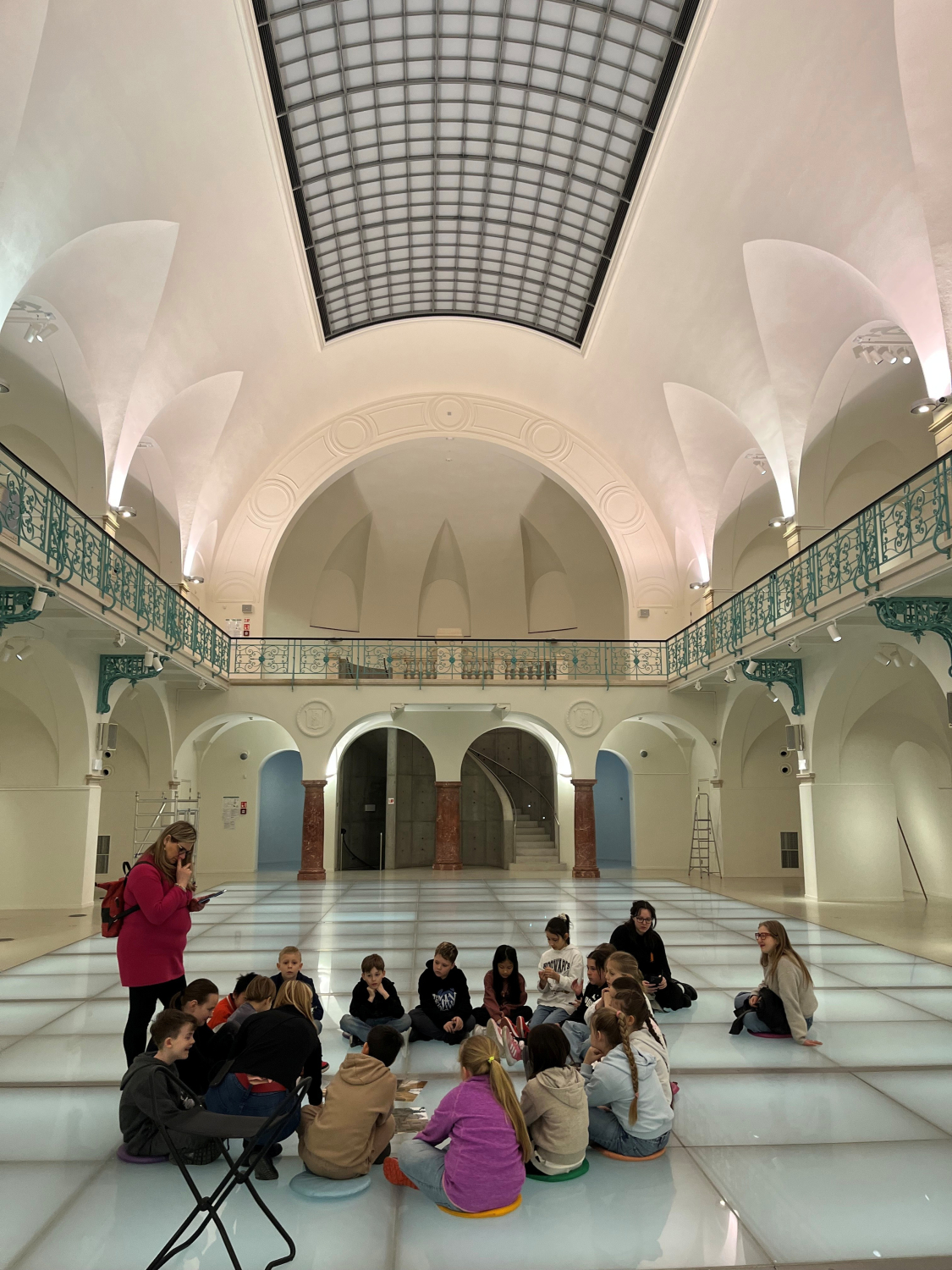 Program Labyrintem Lázní je zážitkově naučným průvodcem po budově galerie, která dříve byla městskými lázněmi. Hned u vchodu se seznámíme se sochami z průčelí, Poseidonem a Amfitrité, bájným božstvem vod a moří, kteří vystupují v knize Labyrintem lázní. Průvodcem nám bude hlavní postava z knihy holub Joe, zvědavý hrdina, který ví, kudy létat, aby objevil ta nejzajímavější zákoutí budovy. Cestou se zaposloucháme do úryvků z knihy a vyzkoušíme si techniku frotáže, díky níž si děti odnesou vlastní otisk lázní. Procházku zakončíme ve výstavě ilustrací z knihy, kde nakoukneme ilustrátorovi přímo pod ruku a prostřednictvím výtvarné aktivity si děti dotvoří ilustrace dle vlastní fantazie.