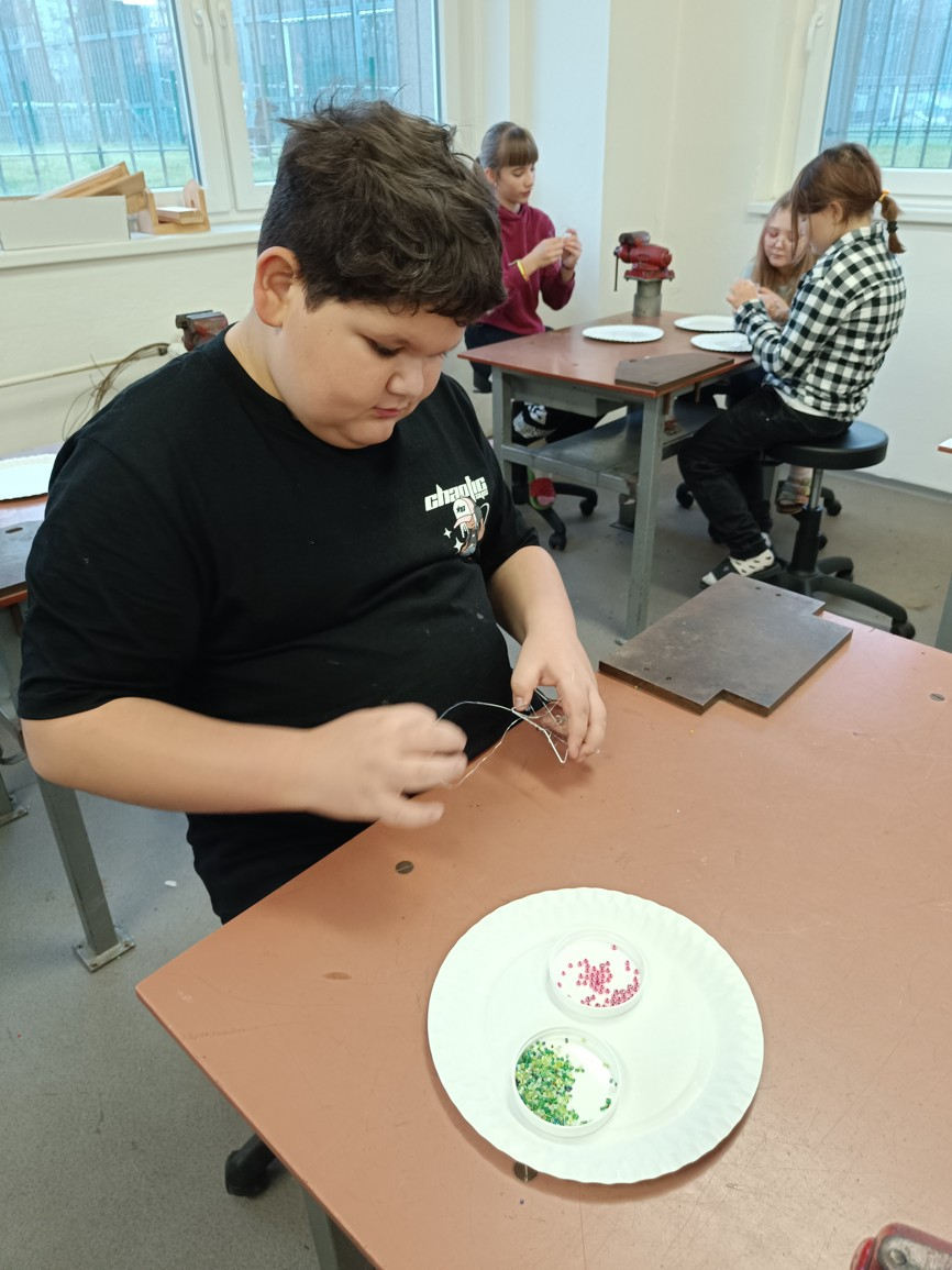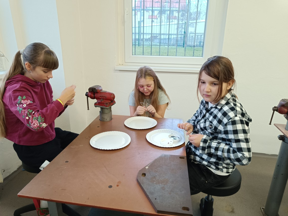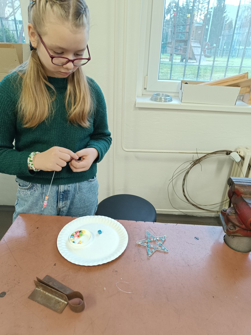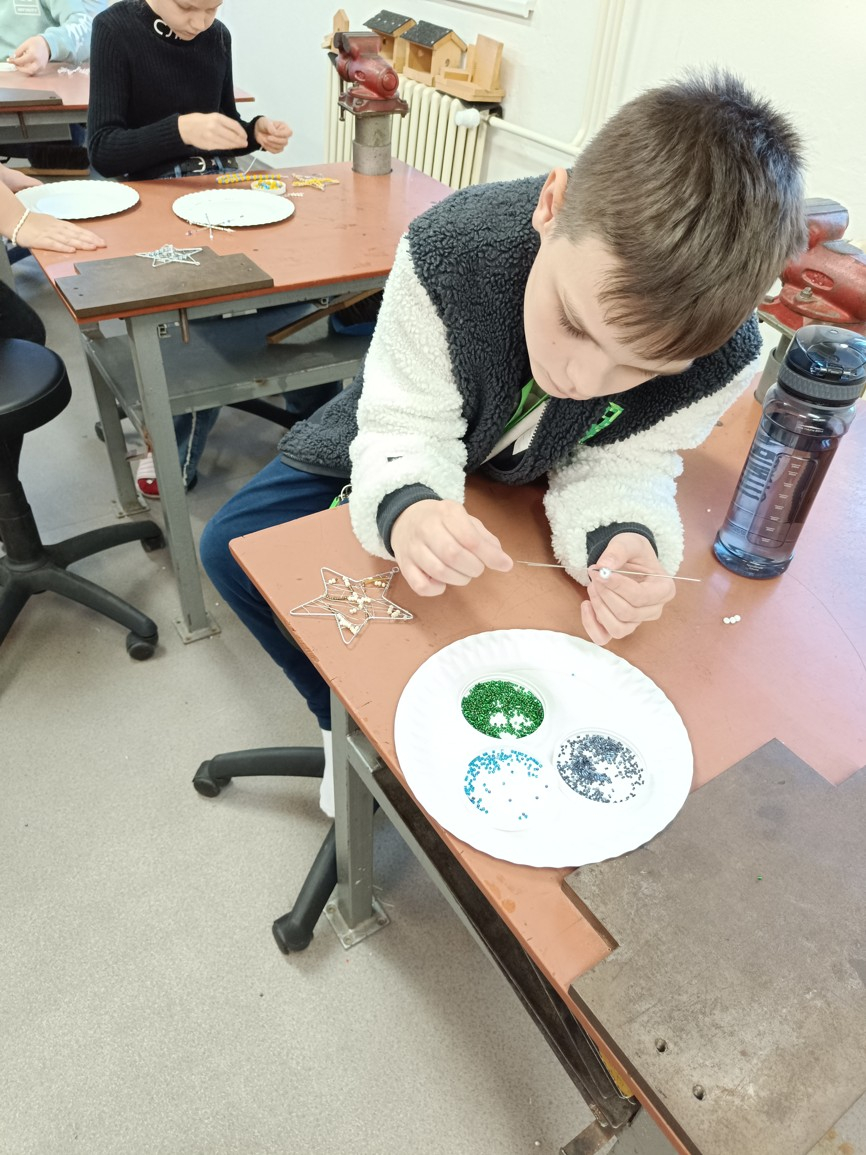 Ve čtvrtek 11. 12. nás opět navštívilo Dramacentrum a jeho výtvarné dílny. Tentokrát si děti vyrobily vánoční hvězdu, náramky a přívěsky.
