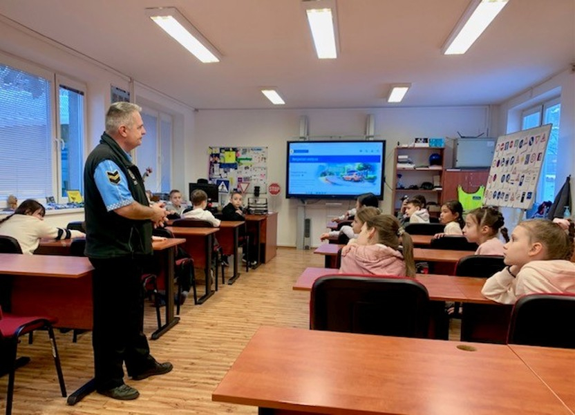 V zimě jsme se na dopravním hřišti věnovali teorii. Učili jsme se hlavně průjezd křižovatkou, kde jsme si zopakovali znalosti o značkách a naučili se použití pravidla pravé ruky. Musím všechny moc pochválit, šlo jim to dobře. Také jsme se vyzkoušeli, jak to bude vypadat při závěrečných testech.