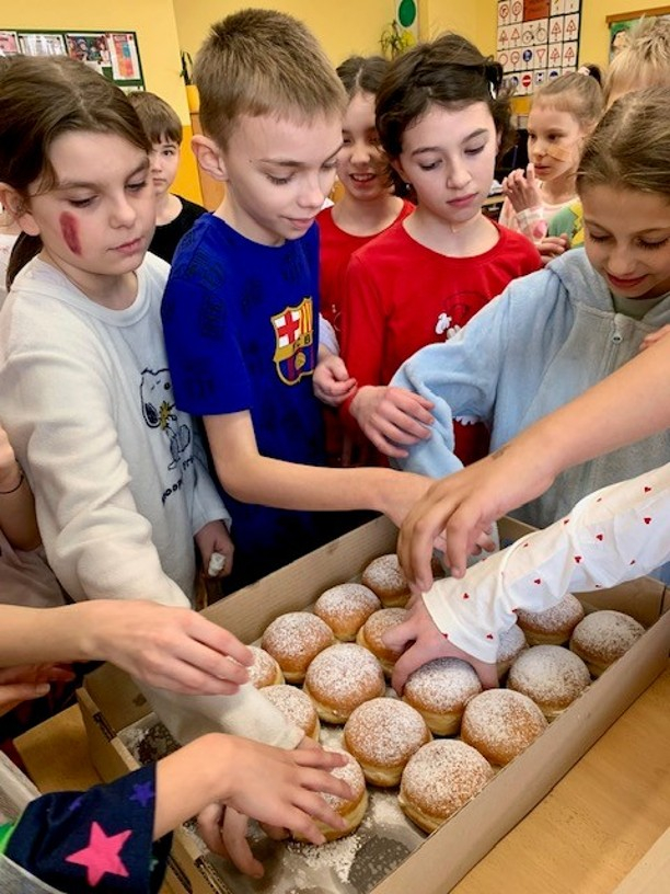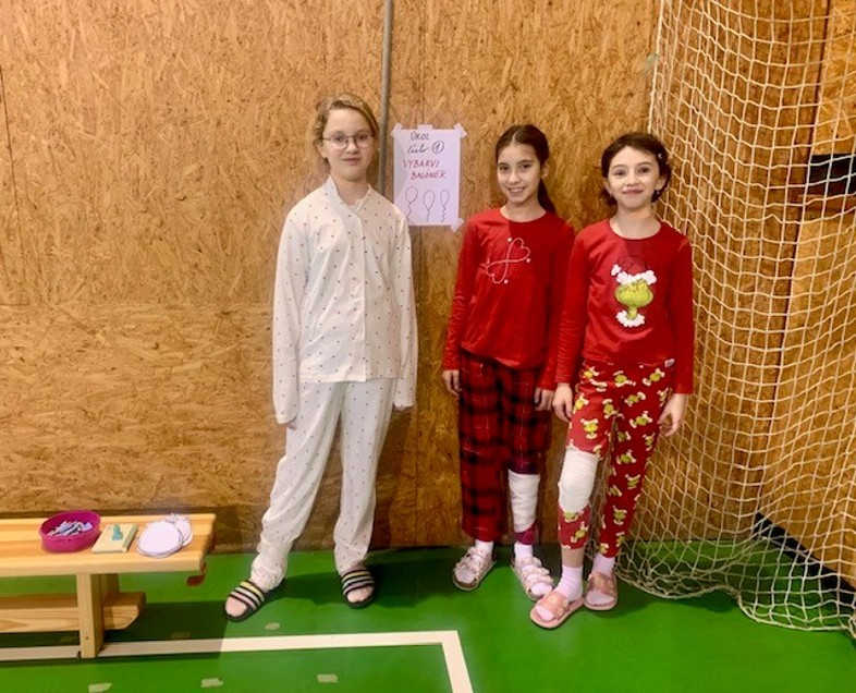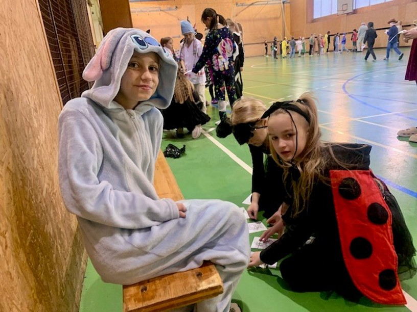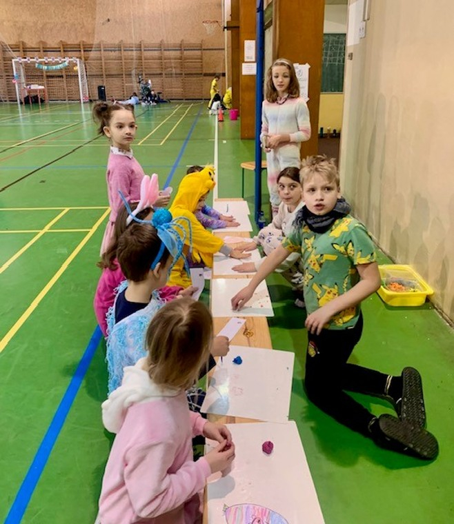 Letošní karneval pro žáky 1. - 3. tříd jsme si užili v roli organizátorů. Přesto jsme přišli ve společné masce. Všem moc děkuji za spolupráci. Vymysleli a připravili jsme úkoly pro menší děti. Také jsme na jednotlivých stanovištích na plnění úkolů dohlíželi a ocenili soutěžící razítkem. Bylo to moc prima. Od účastníků karnevalu jsme vyslechli slova chvály a dostali masopustní koblihy.
