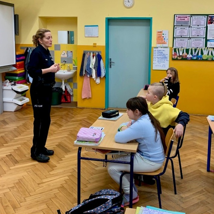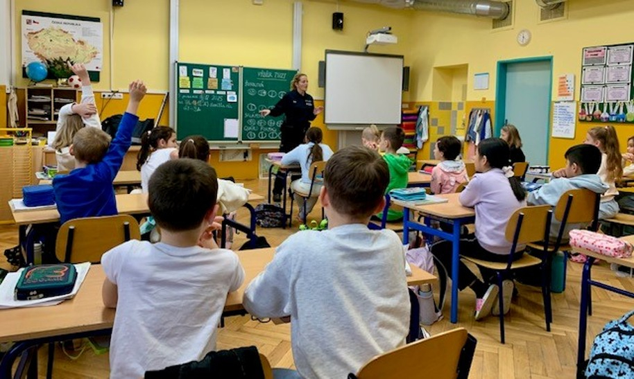 Rozpoznat šikanu........... rozlišit, kdy žaluji, kdy správně informuji dospěláky o nebezpečí. To bylo obsahem dnešního povídání s policistkou. Žáci poslouchali pozorně. Přeci jenom je rozdíl, když jim takové věci říkají rodiče, učitelka nebo ozbrojený příslušník Policie ČR.