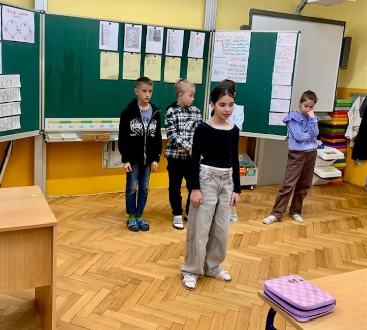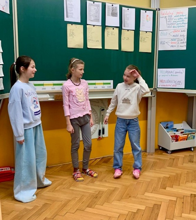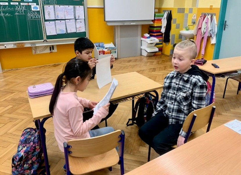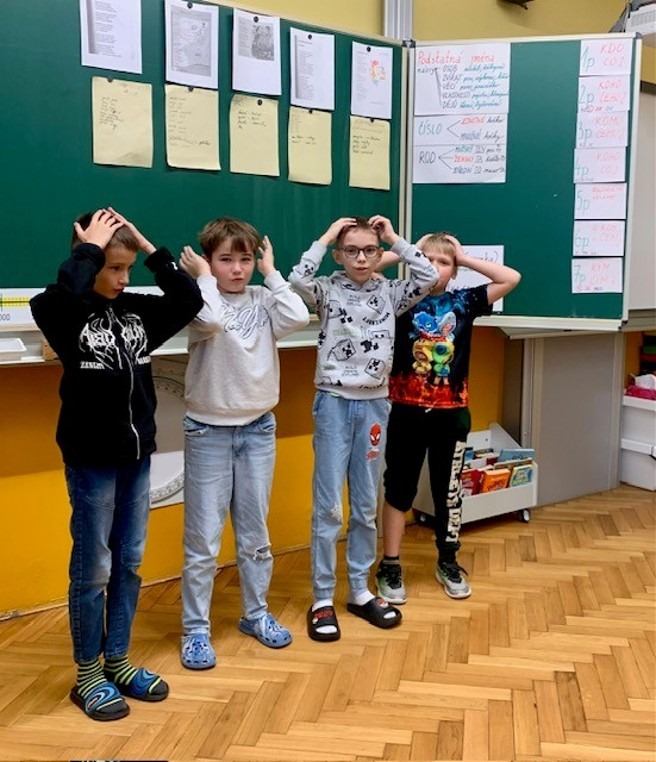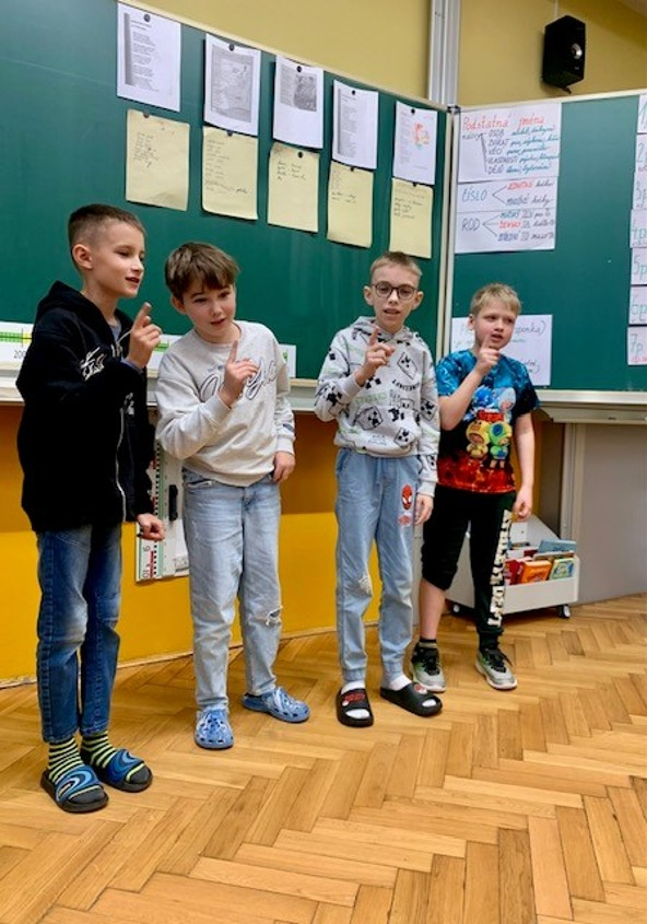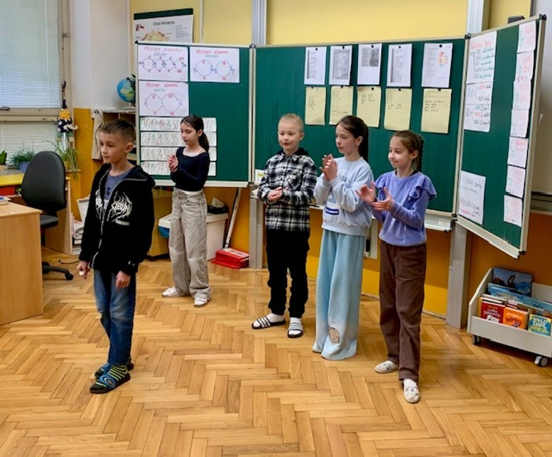 V den soutěže jsme s básněmi ještě pracovali ve skupinách. Hledali jsme rýmy, doprovázeli básně pohybem a hlavně trénovali před menším publikem. Soutěž byla tříkolová, abychom mohli rozhodnout co nejlépe. Nakonec byl nejúspěšnější Vojta s básní PIKY, PIKY NA HLAVU, Anička s básní JEDEN SYSEL V LITOMYŠLI a Viktor s básní KUŘÁTKO V OBILÍ.