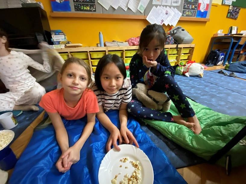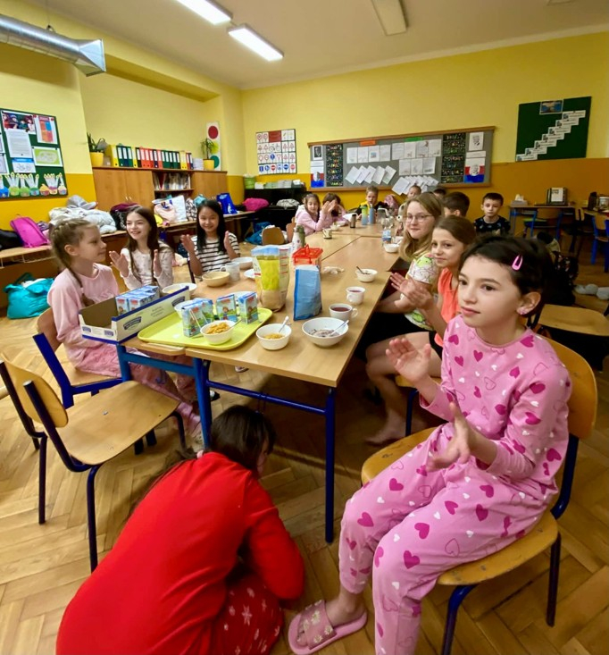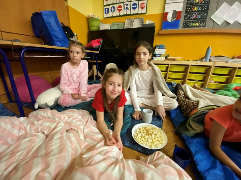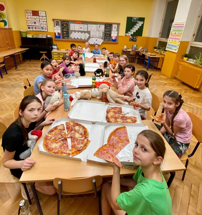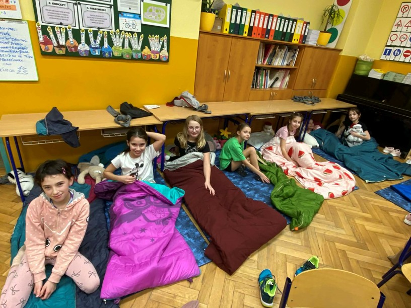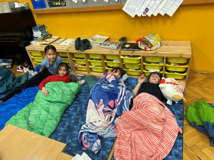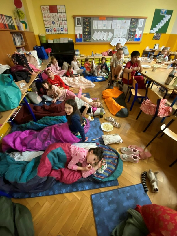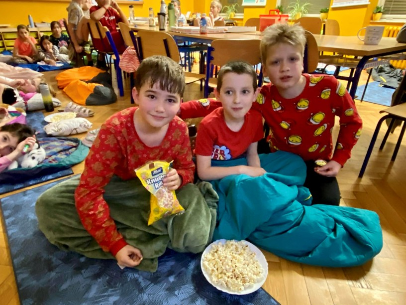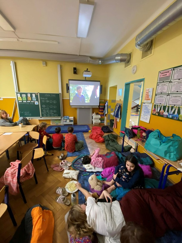 Naší vánoční přespávačku jsme si báječně užili. Řádili jsme v tělocvičně, dali jsme si pizzu, užili si film E.T. mimozemšťan, trochu se báli při noční procházce po škole, nechyběla polštářová bitva.......... prima akce!
