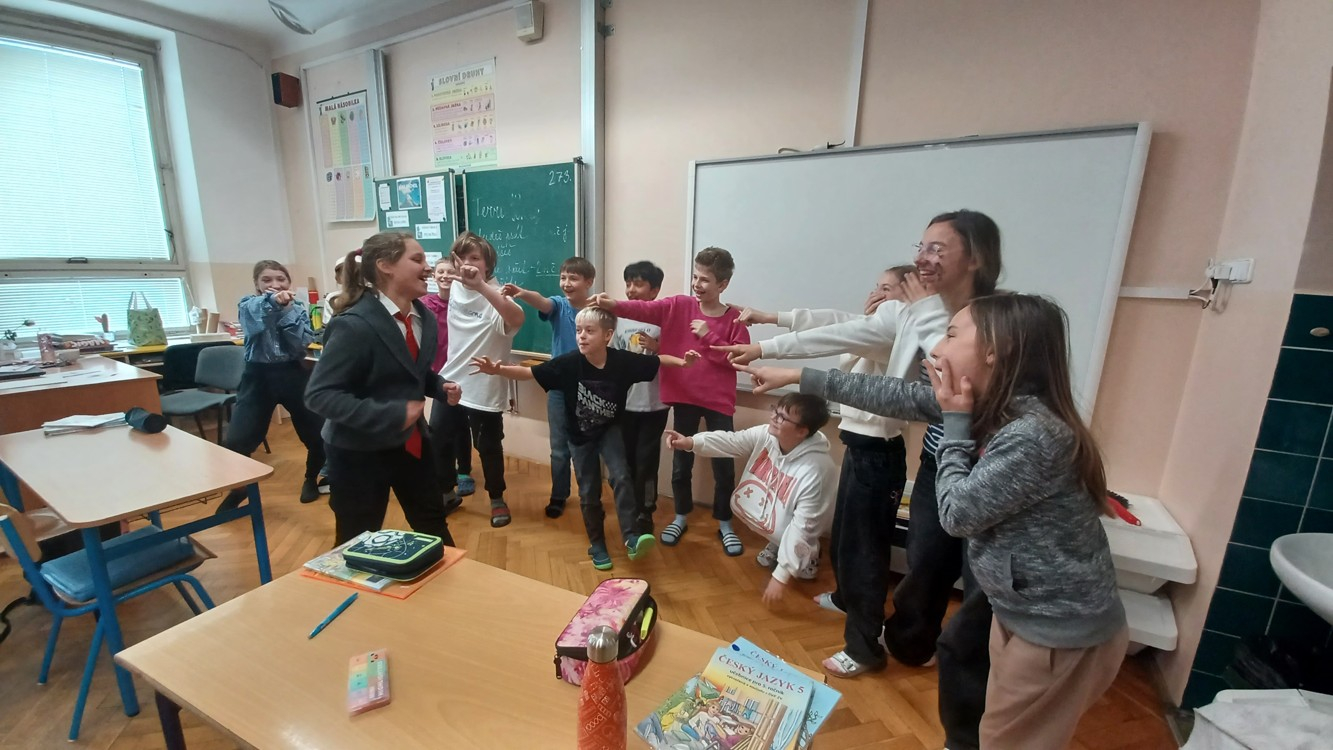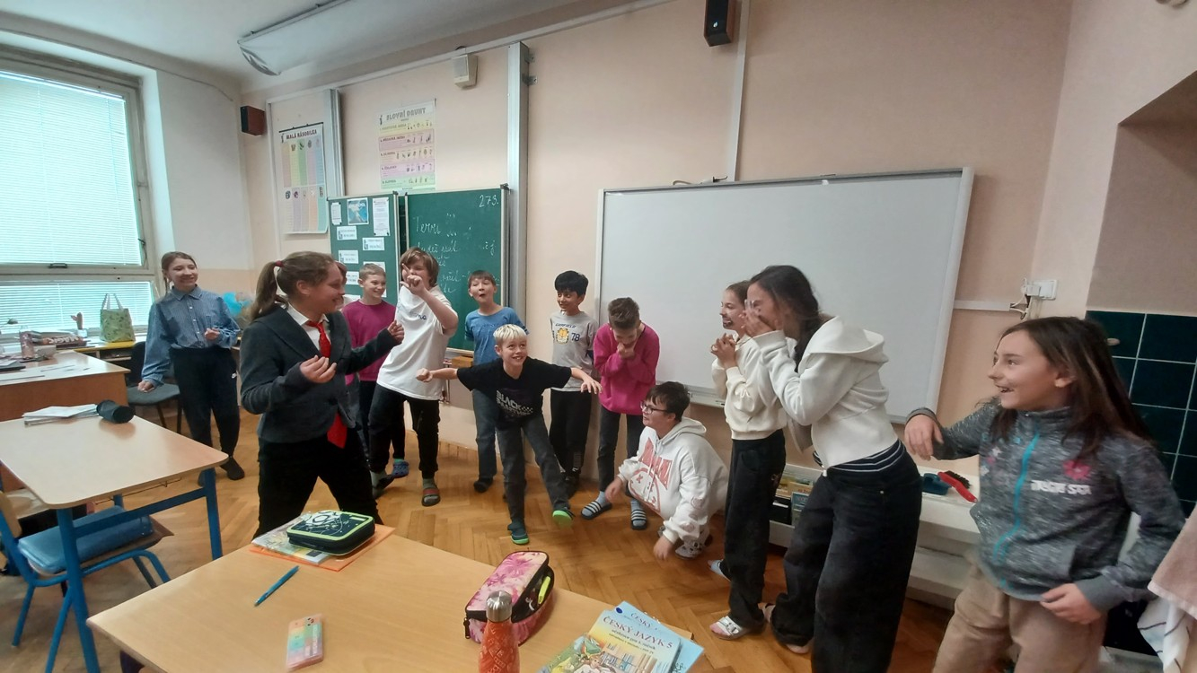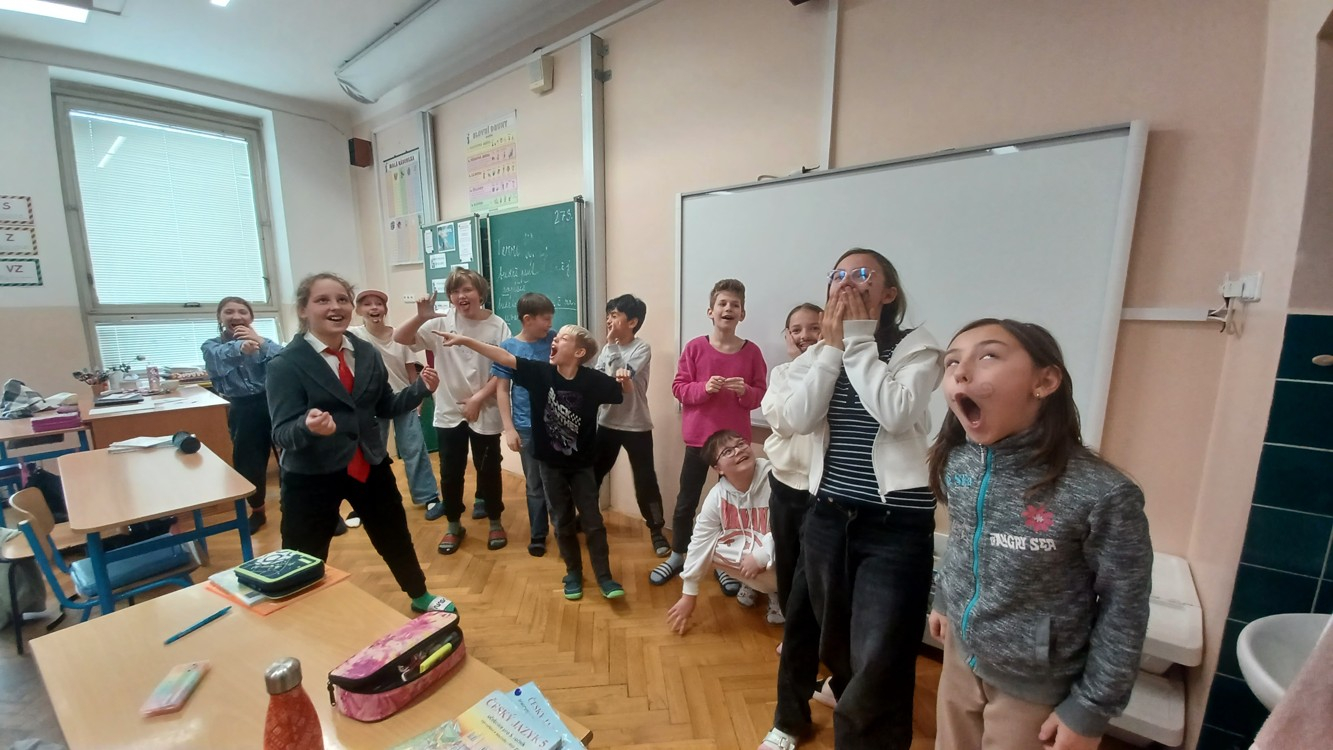 Návštěva divadelního lektora nám na apríla obohatila vyučování...děti si hodinu velmi užily, učily se improvizovat, komunikovat, reagovat na změny, používat svou fantazii...moc dobře jsme se všichni bavili!