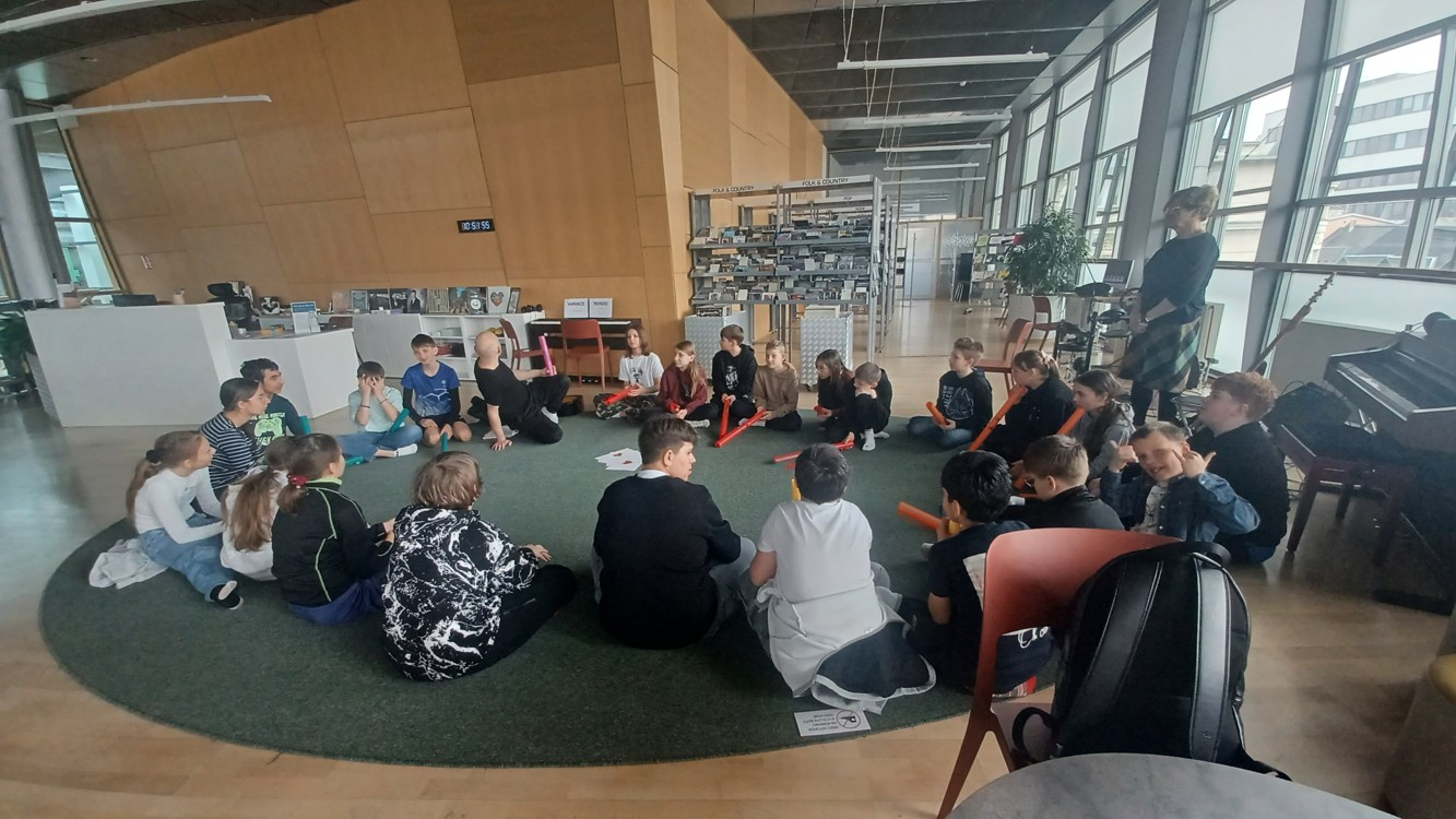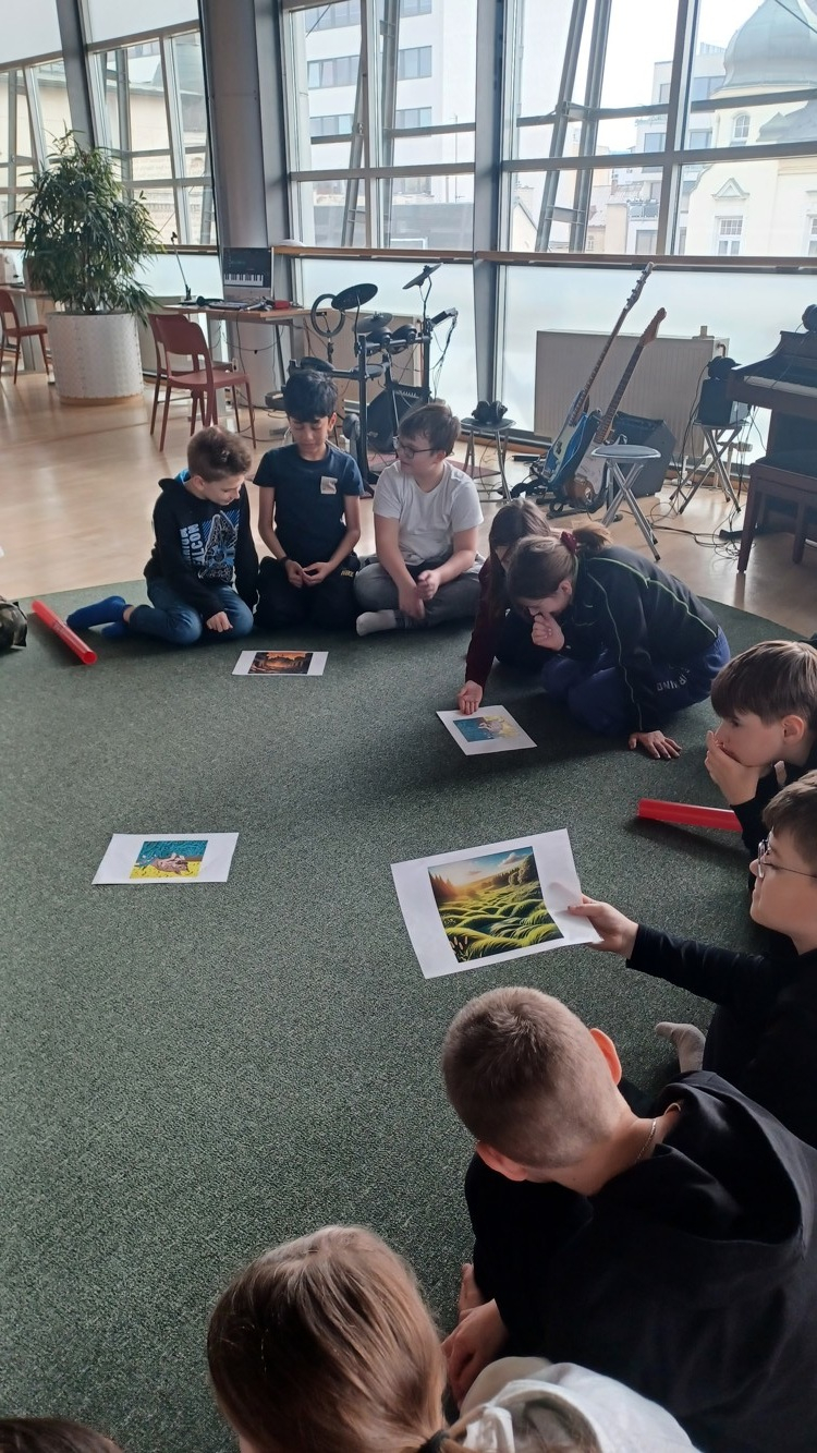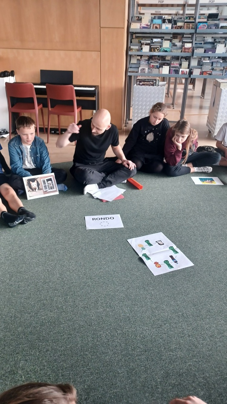 V úterý jsme navštívili krajskou knihovnu, kde pro nás byl připravený hudební program. Pomocí slov, jednoduchých nástrojů a písní jsme se seznámili s klasickými hudebními formami. Rondo, variace, fuga a sonáta pro nás přestaly být záhadou, protože jsme si je společně pojmenovali a prakticky vysvětlili. Program se nám moc líbil a moc nás bavil.