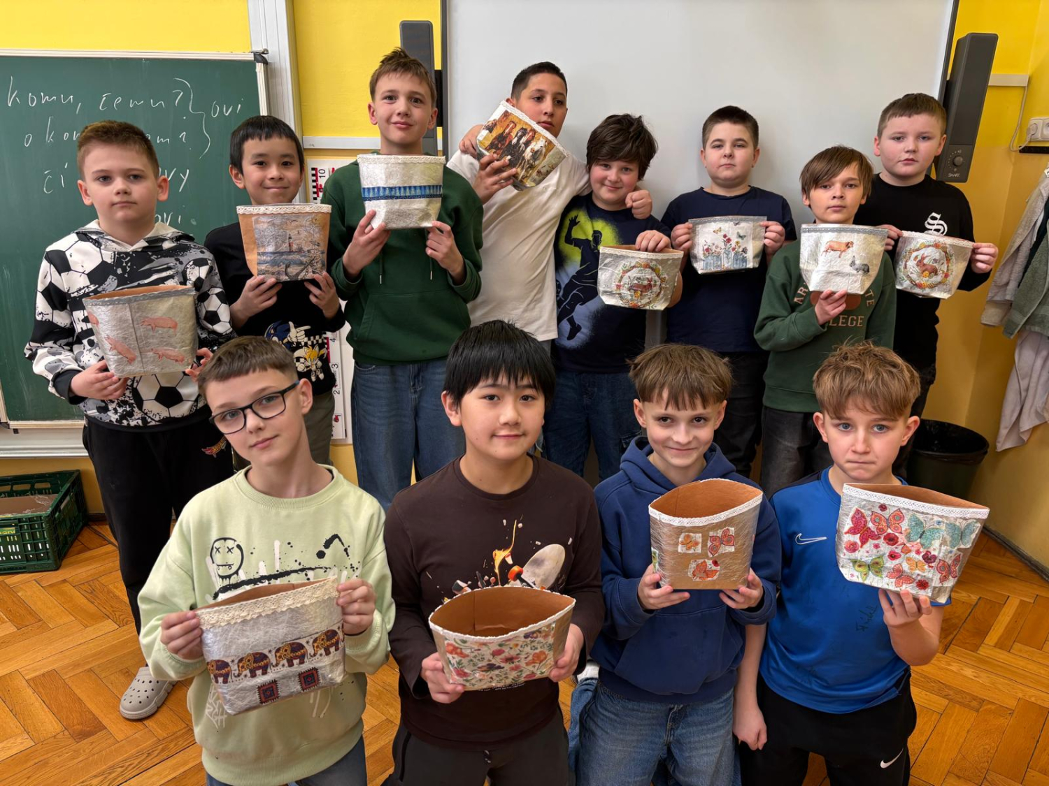V pátek jsme si v další lekci Dramacentra vytvořili vlastní voděodolné květináče, každý si udělal vlastní motiv a opět jsme si odnesli domů pěkný výrobek.