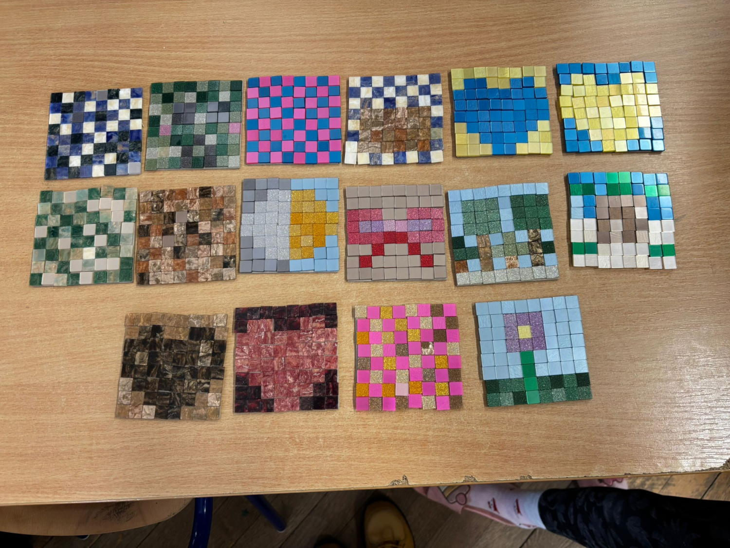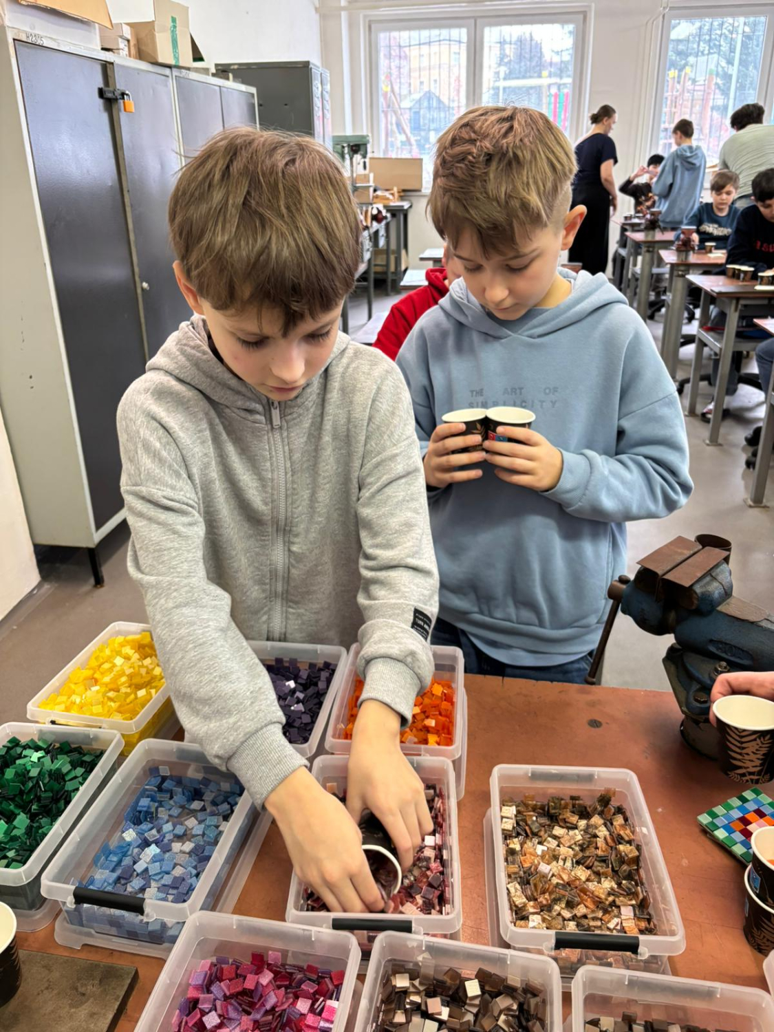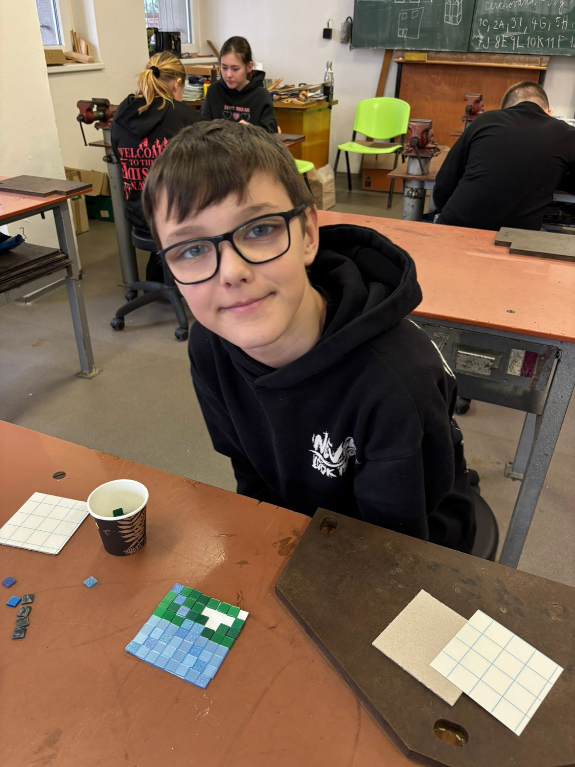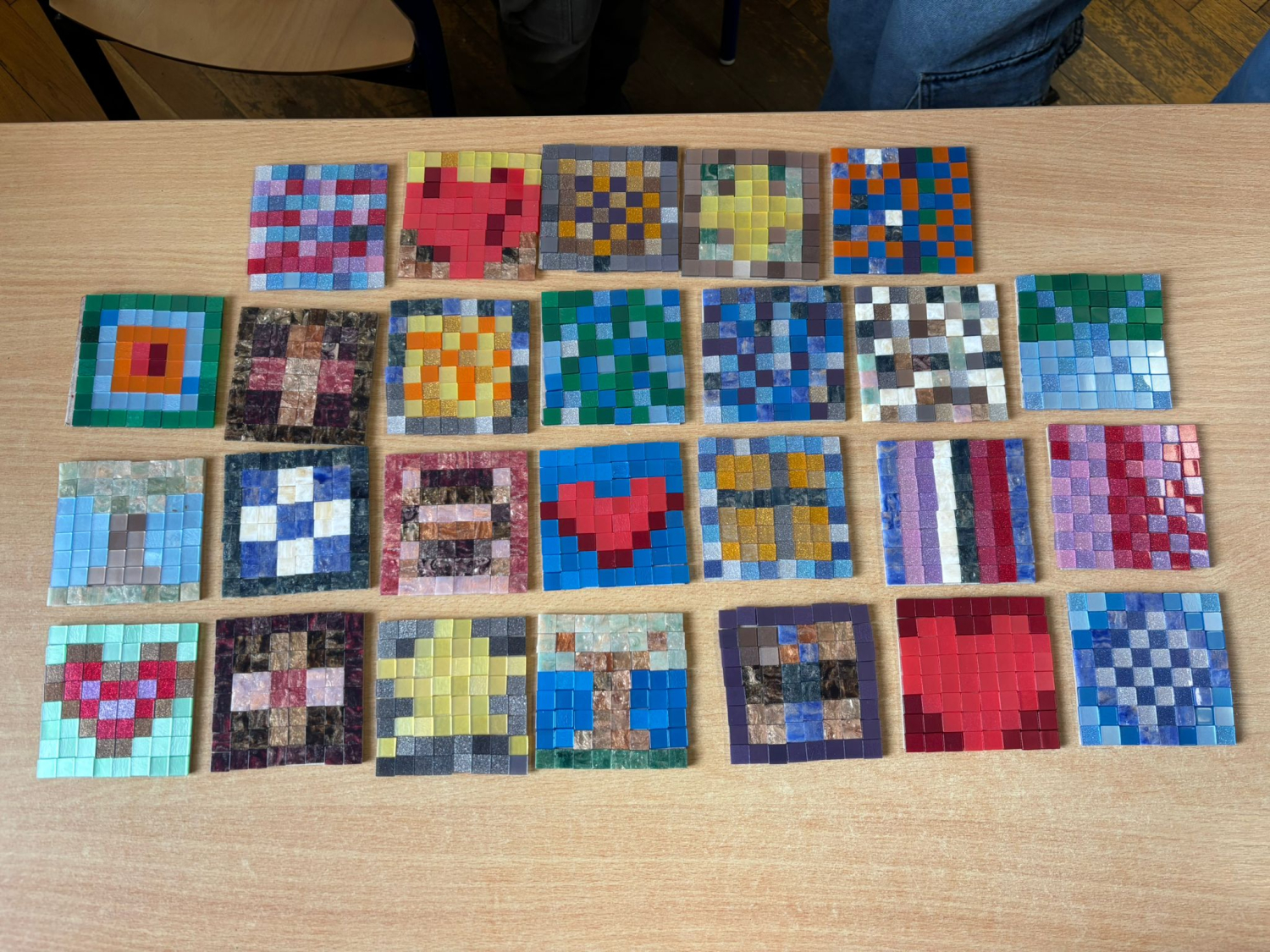 Dnes jsme vyráběli podtácky pod hrnek, které jsme zdobili mozaikou podle vlastní fantazie.