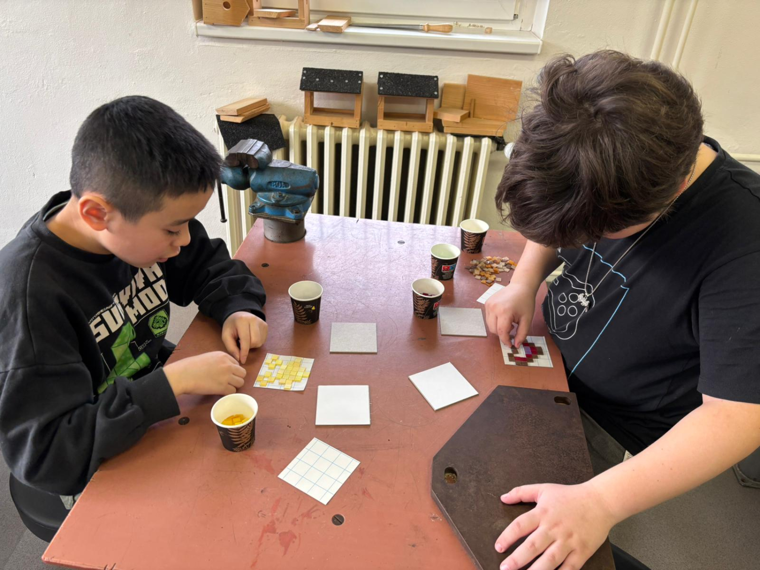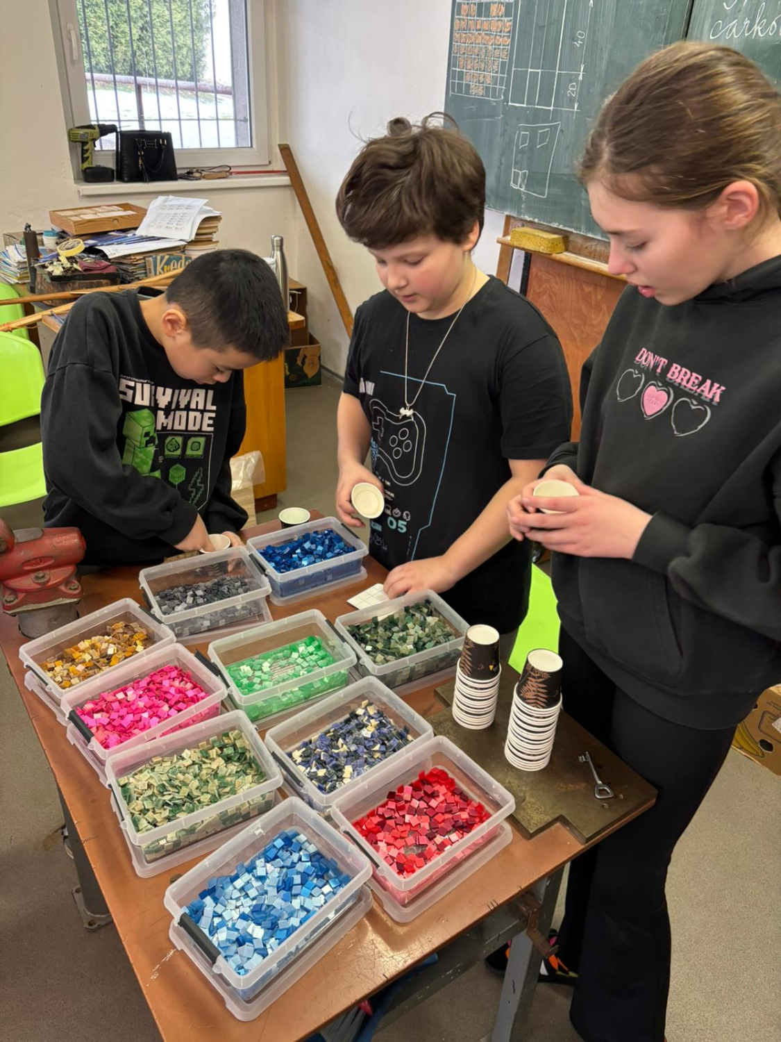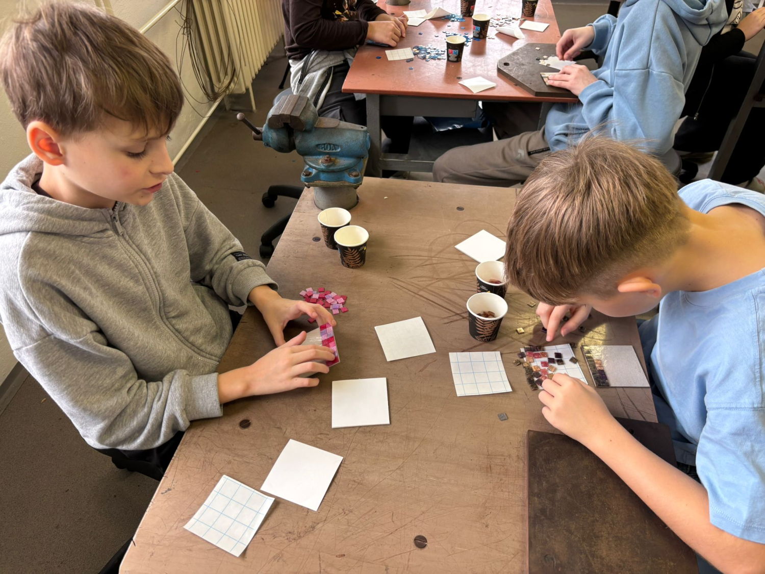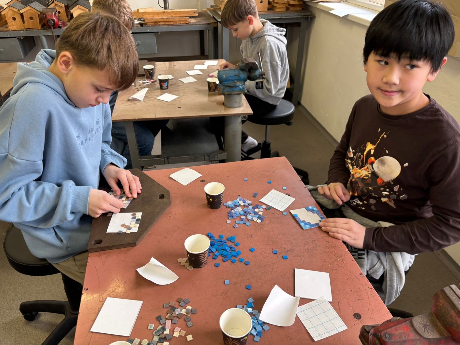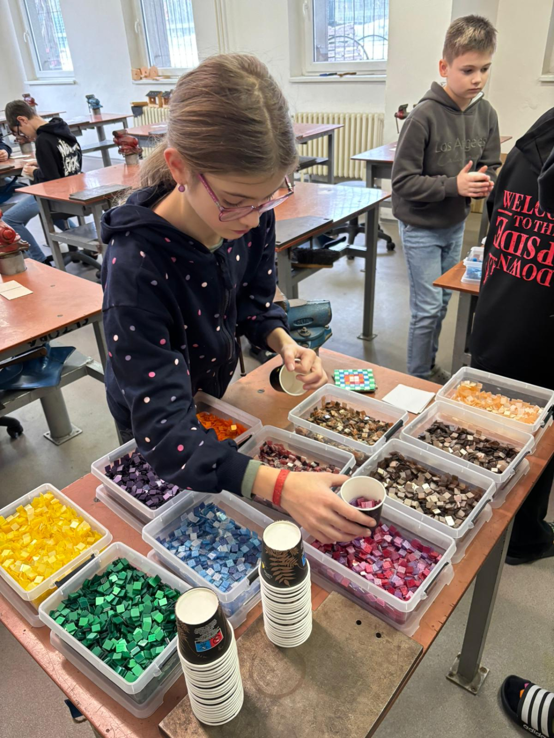 Dnes jsme vyráběli podtácky pod hrnek, které jsme zdobili mozaikou podle vlastní fantazie.