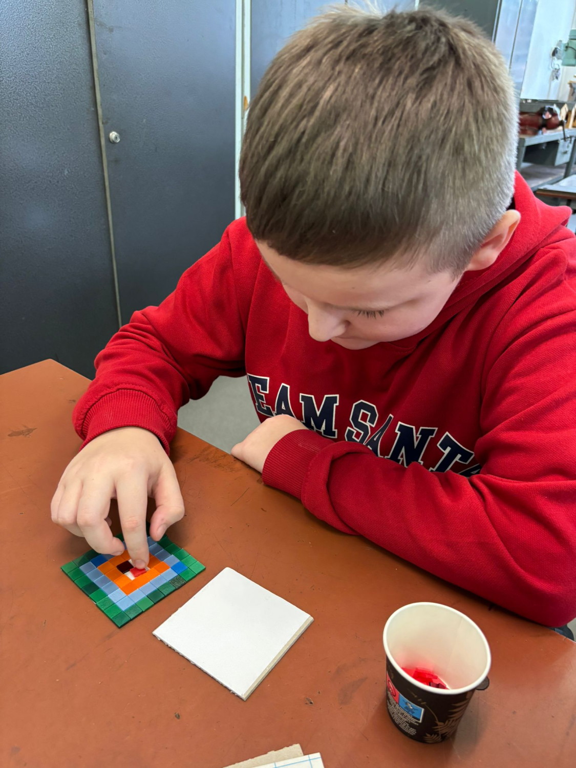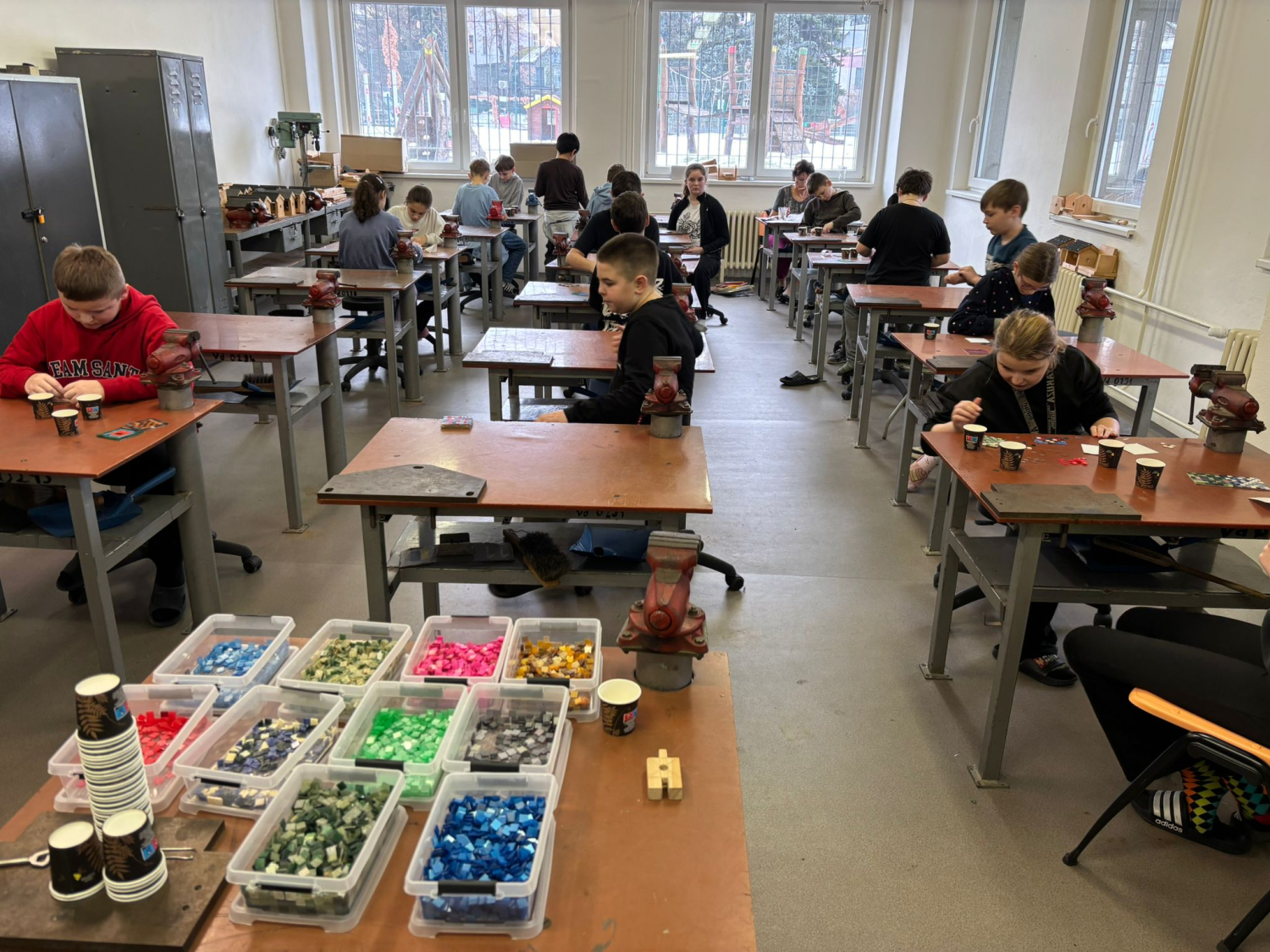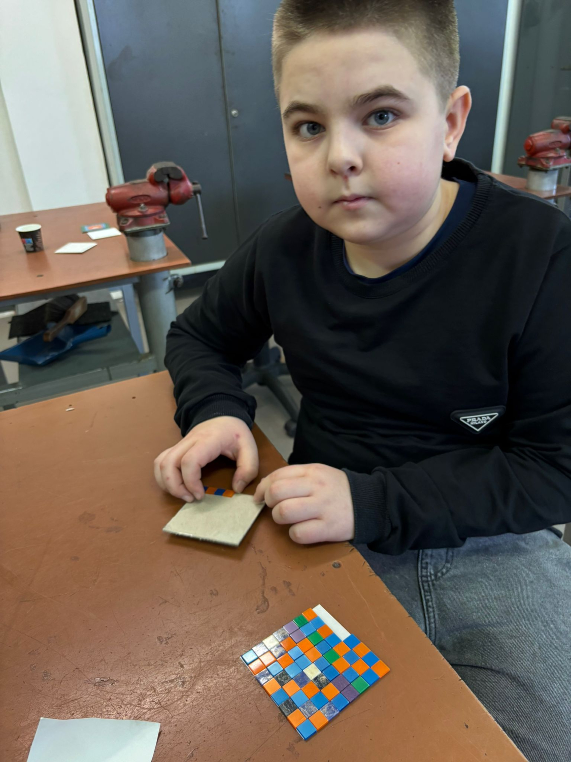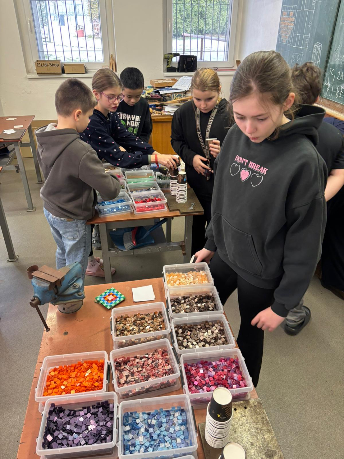 Dnes jsme vyráběli podtácky pod hrnek, které jsme zdobili mozaikou podle vlastní fantazie.