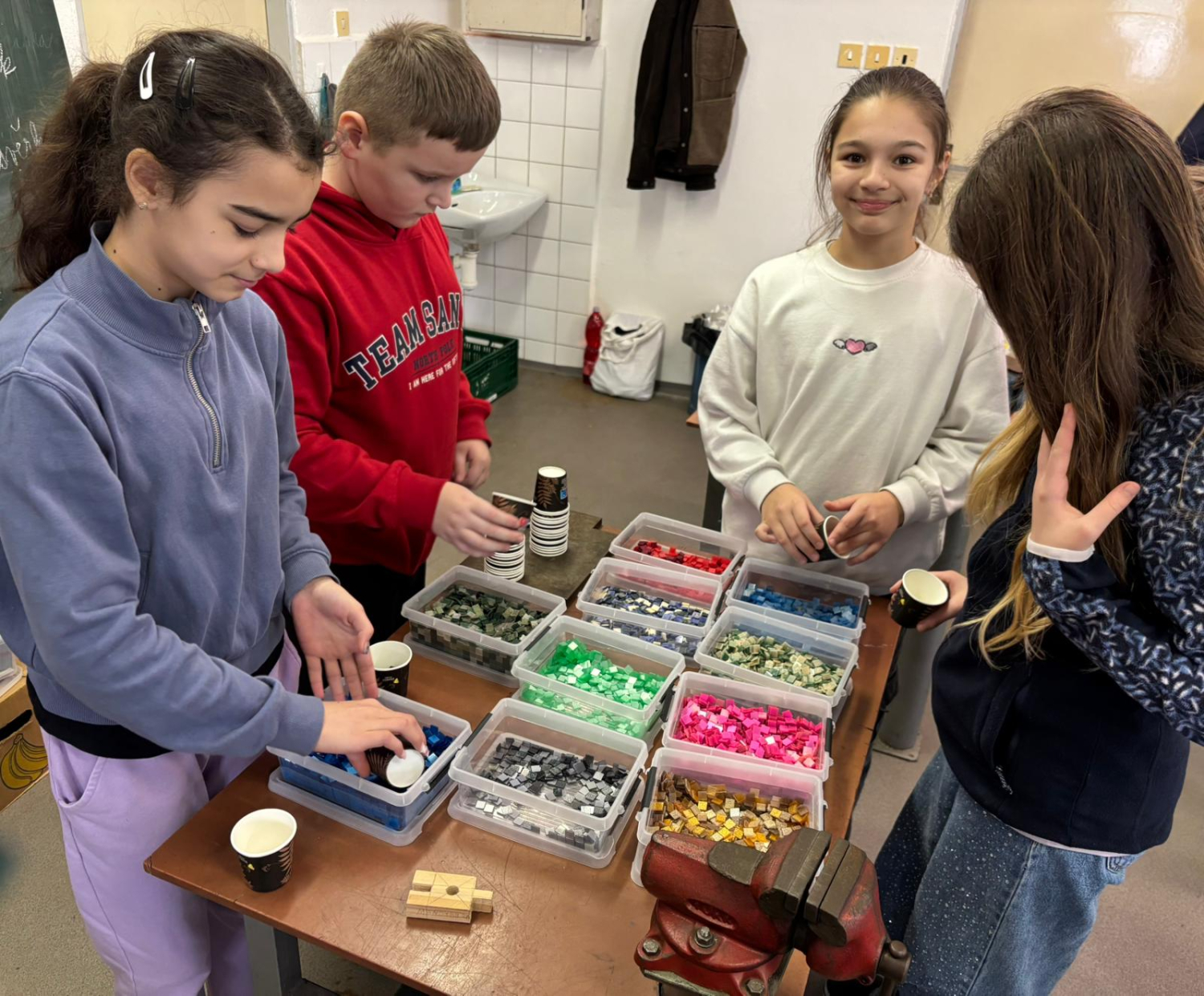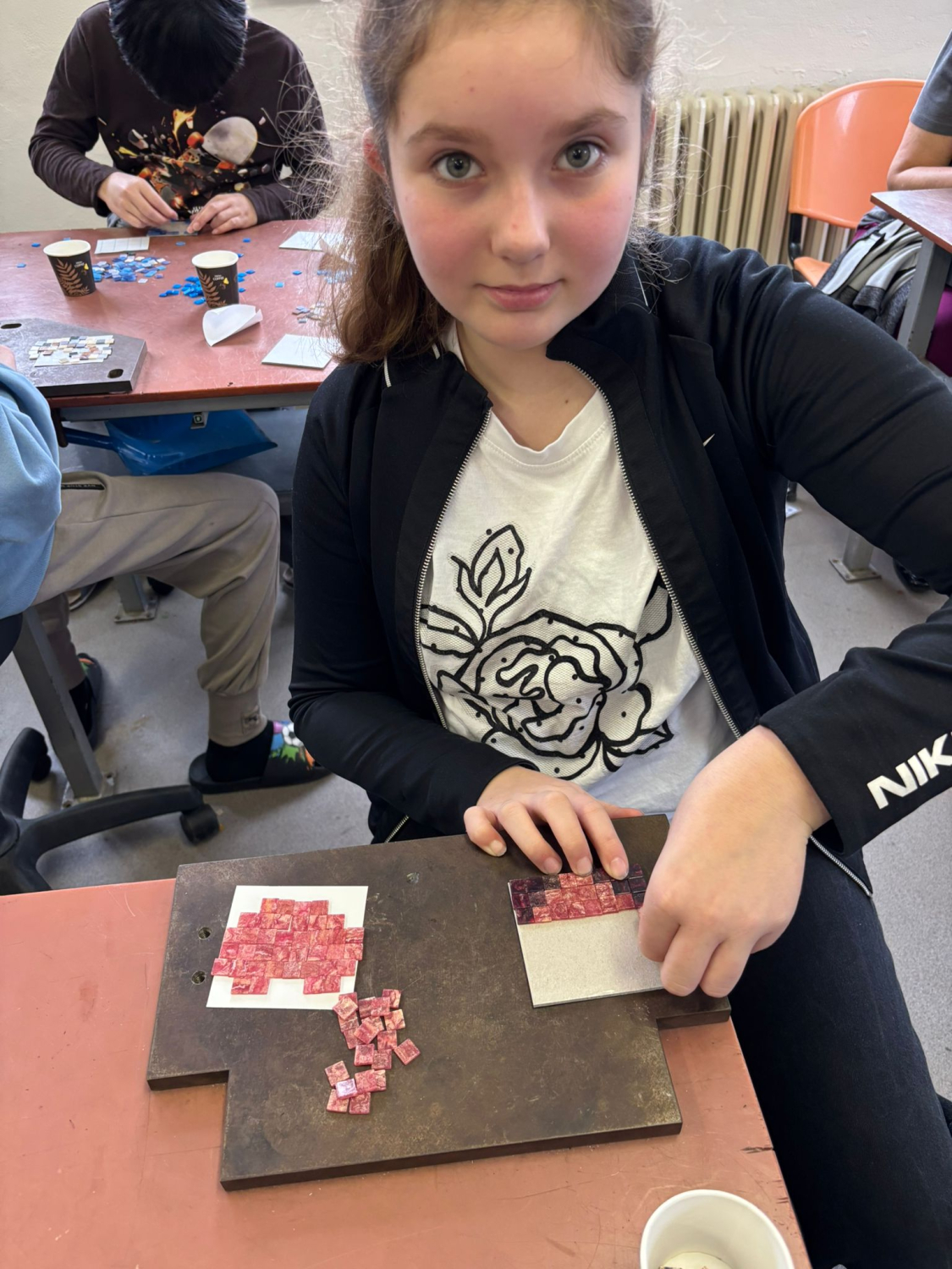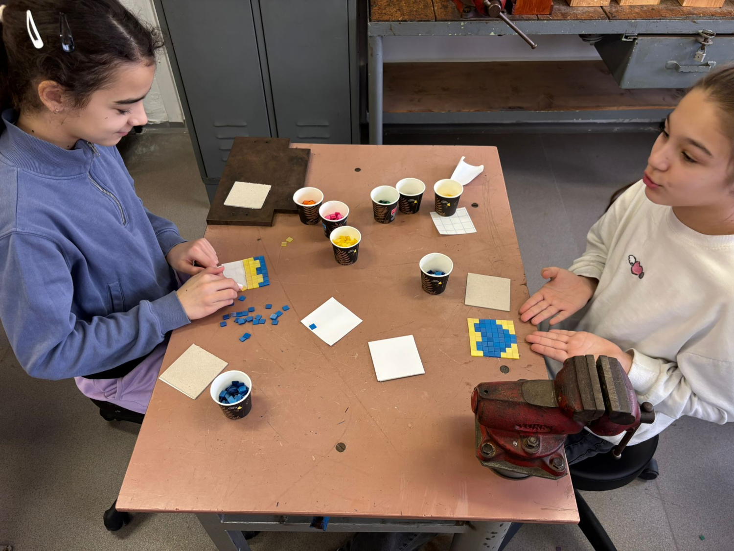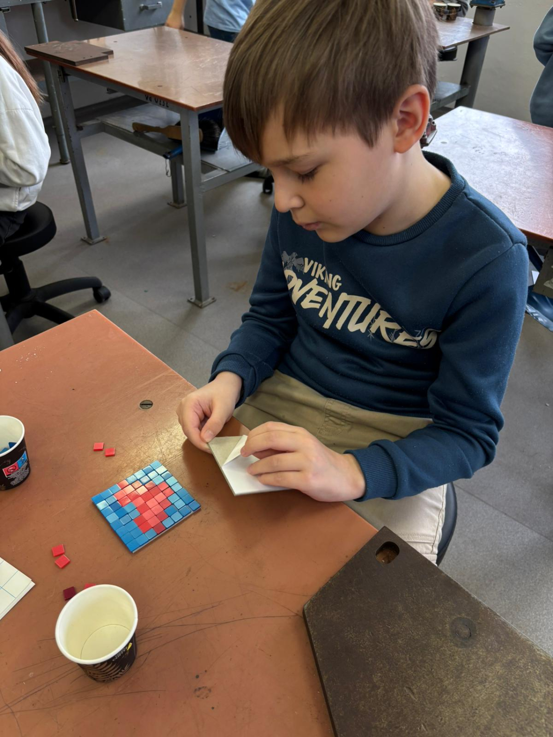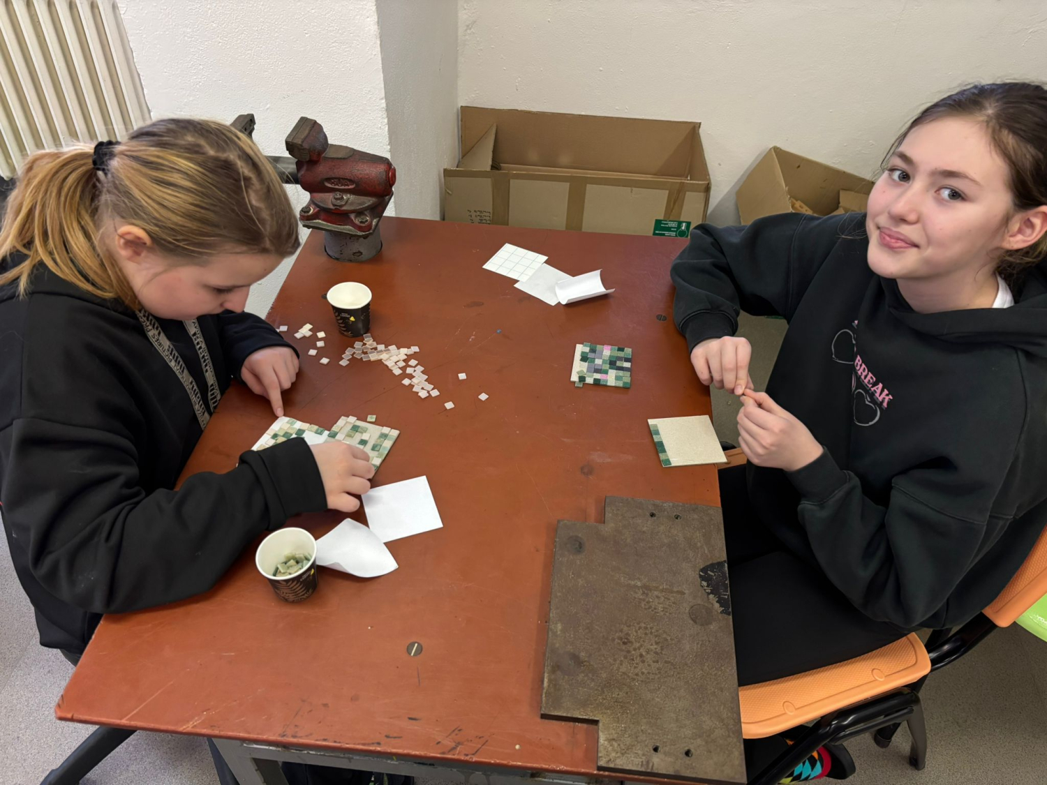 Dnes jsme vyráběli podtácky pod hrnek, které jsme zdobili mozaikou podle vlastní fantazie.