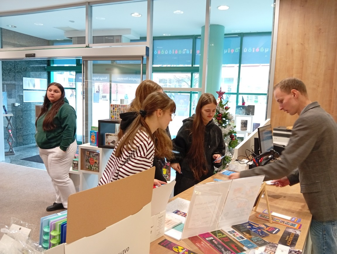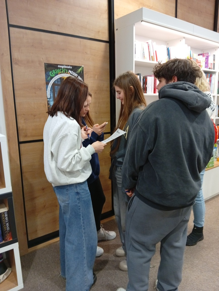 V rámci výuky AJ jsme dnes část hodiny strávili zamčeni v prodejně cizojazyčné literatury Megabooks. Díky rychlému vyřešení únikovky, jejímž tématem byly Vánoce, jsme zůstali zakódováni jen něco málo přes 20 minut. Řešení nakonec nalezly všechny čtyři skupiny, takže by zde nikdo o následné vyučování nepřišel. Naopak inspiraci pro přání, co by mohli najít pod stromečkem, zde několik žáků našlo.