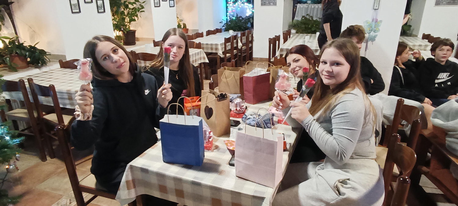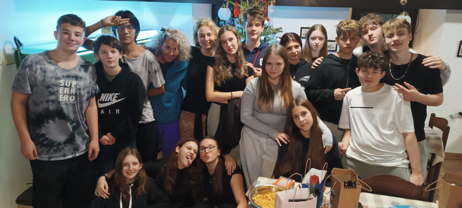 Po sváteční večeři i s přípitkem jsme si pod stromečkem rozdali dárečky, připomněli si fotky z akcí a pak až skoro do půlnoci hráli společně hry.( Nejlepší byly ale ty na pokoji :-) )